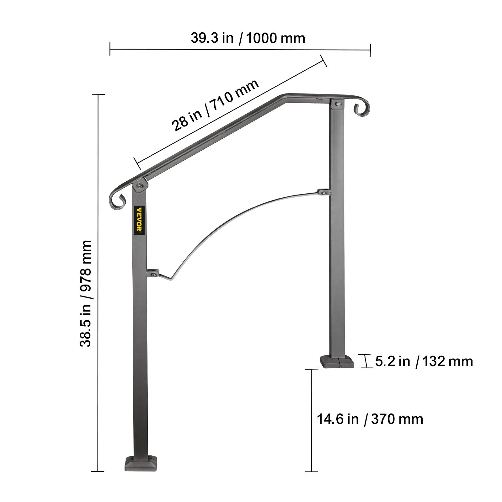 • Flexible for 2 or 3 Steps: Max Height for Steps: 14.6"/37 cm; Distance Between Posts: 28"/71 cm; Upper Post Height: 38.2"/97 cm; Lower Post Height: 38.5"/97.8 cm. Due to the flexible height, our wrought iron handrail fits your 2 or 3 steps according to the different sizes. It is perfect for helping people keep balance in the rain or winter and prevent skidding.
