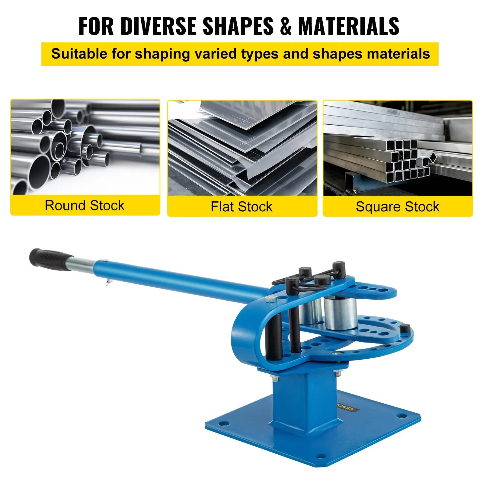 • Different Shape of Materials: The product is able to bend different metal materials such as steel, wrought iron, copper, etc. And it can bend different shapes of materials, such as flat stock, round stock, and square stock.