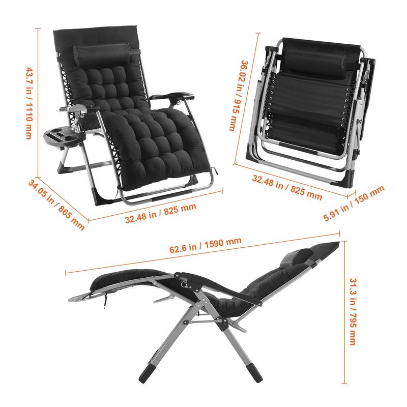 • 500lbs Heavy-Duty Support: Featuring a robust triangular frame, reinforced square steel tubes, 8mm aluminum locks, and double-layer elastic cords, this 33" zero gravity chair offers exceptional stability and supports up to 500lbs. Ideal for users of all sizes.