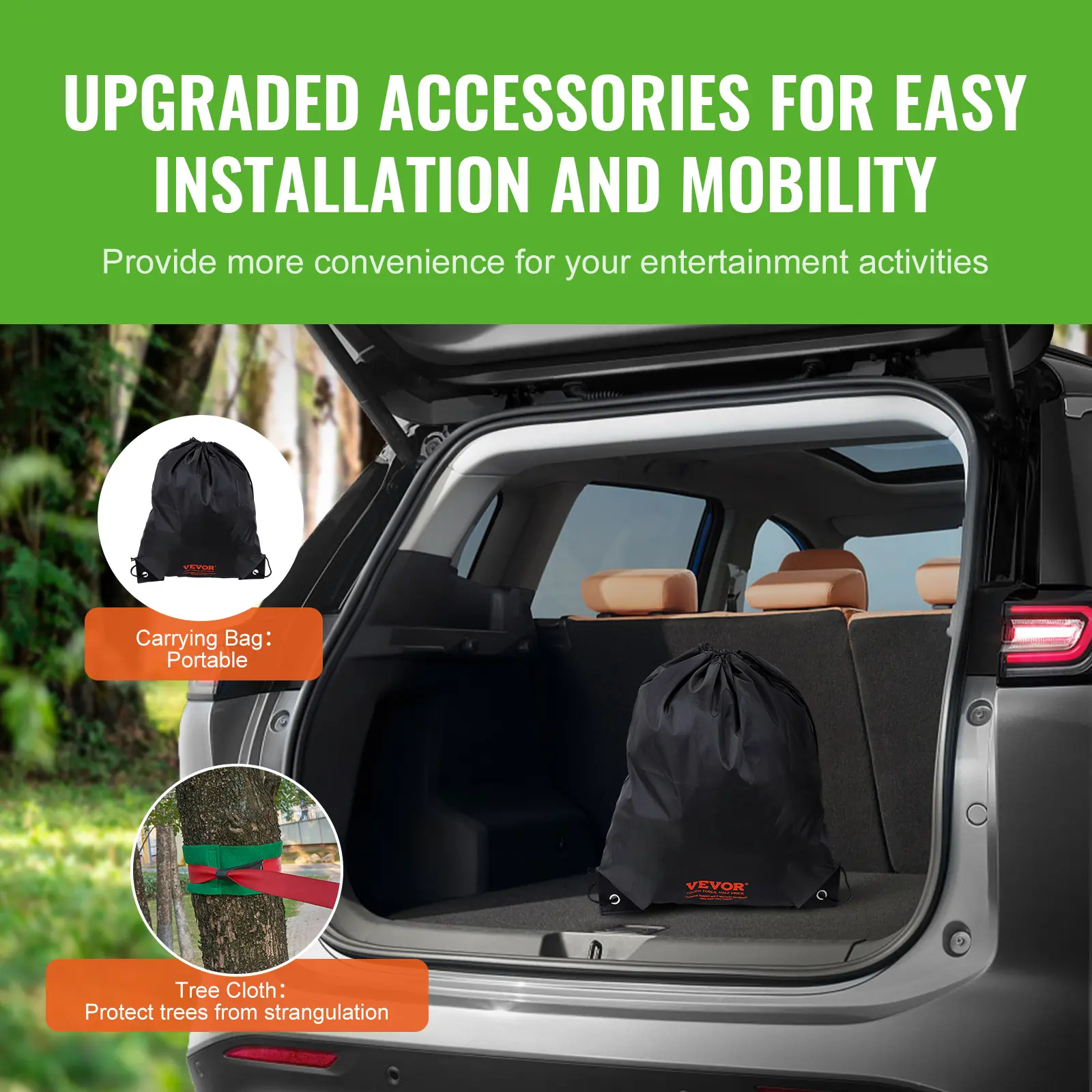 • Upgraded Accessories: This zip lines for kids and adults includes everything you need. It adds a portable bag for easy storage and mobility. It comes with two tree protectors to prevent damage to trees, also serving as slack line protectors for increased durability. The tensioner effortlessly tightens and secures the straps with simple operation.
