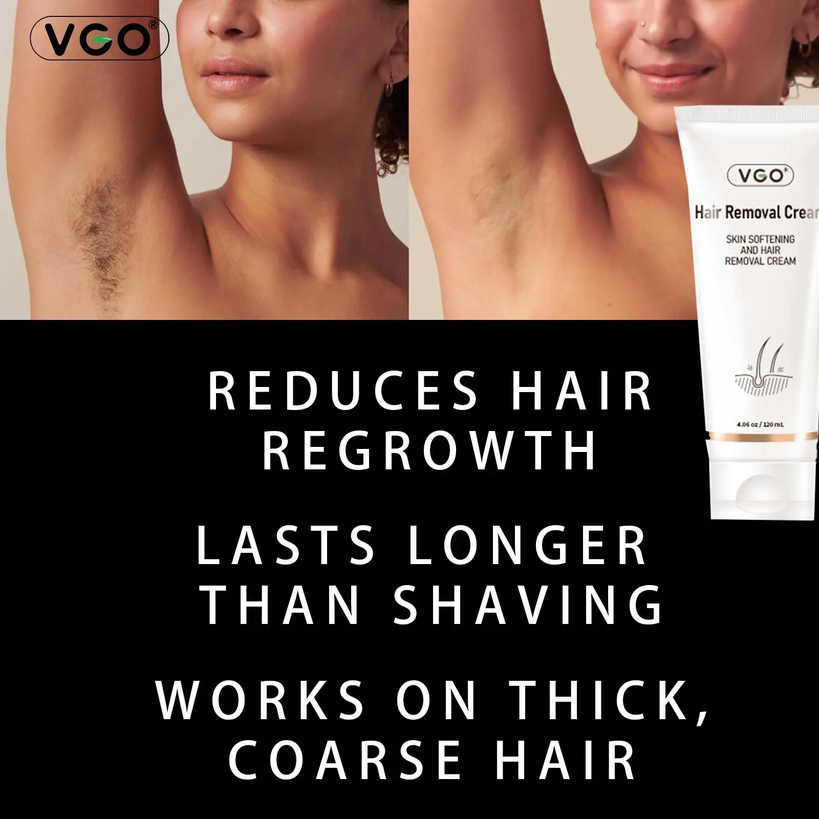 VGO Gender-Free Pain-Free Hair Removal Cream, Body, Back and Leg Hair Removal Gel, Suitable for All Skin Types for Quick Hair Removal  120ml /4.06 oz