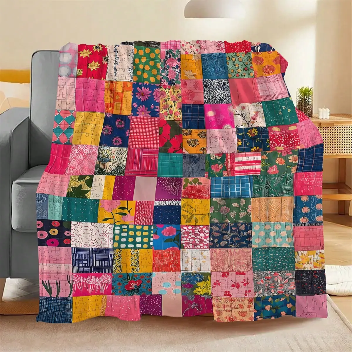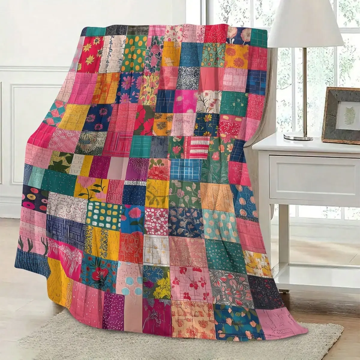 🌸 Vibrant Patchwork Flannel Blanket 🌸