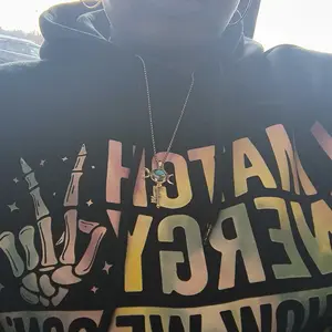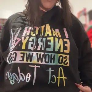 I got my sweatshirt in and put it on to noticed the letter are coming up and I haven’t even wore it once’s it, maybe it’s the T-shirt press wasn’t hot enough or the transfer did goes on it well idk but it’s lifting up and I’ll show photos just want to make it known and it’s true to size,