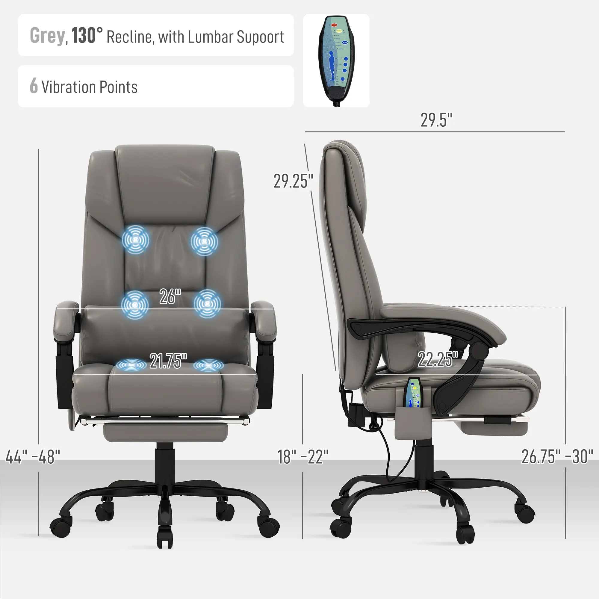 Grey, 130° Recline