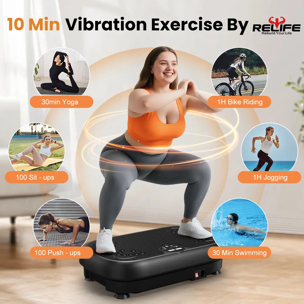 "The RELIFE vibration plate offers 3 unique training channels: Walking, Jogging, and Running. With a variety of exercise modes, you can try different vibration exercises or combine the vibration exercise with sit-ups, push-ups, and yoga."