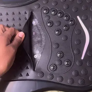 The plate has little acupuncture bumps that massage your feet. To be honest it can get a little intense at times, but I wear my shoes or socks when I don't want to utilize that option. It has an easy to use remote to adjust the intensity & time.