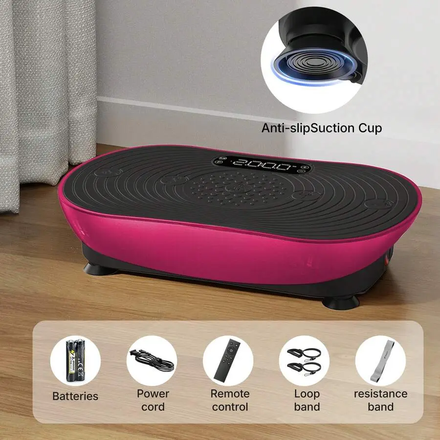 HOTWAVE Vibration Plate Exercise Machine for Whole Body Workout, Home Fitness Platform with Resistance Bands & Remote, Compact Design for Home Gym