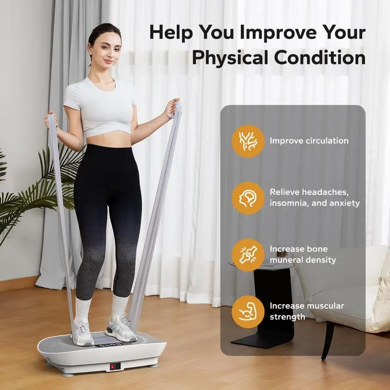 ·【Rich Experience, Effective Results】 MERACH vibration plate exercise machine offers various exercise modes, including manual and automatic modes, with 10 levels of vibration speed selection. Equipped with resistance training bands, it provides comprehensive full-body workouts. Just 10 minutes a day increases bone mineral density and relieves stress, allowing you to effortlessly achieve a perfect physique.