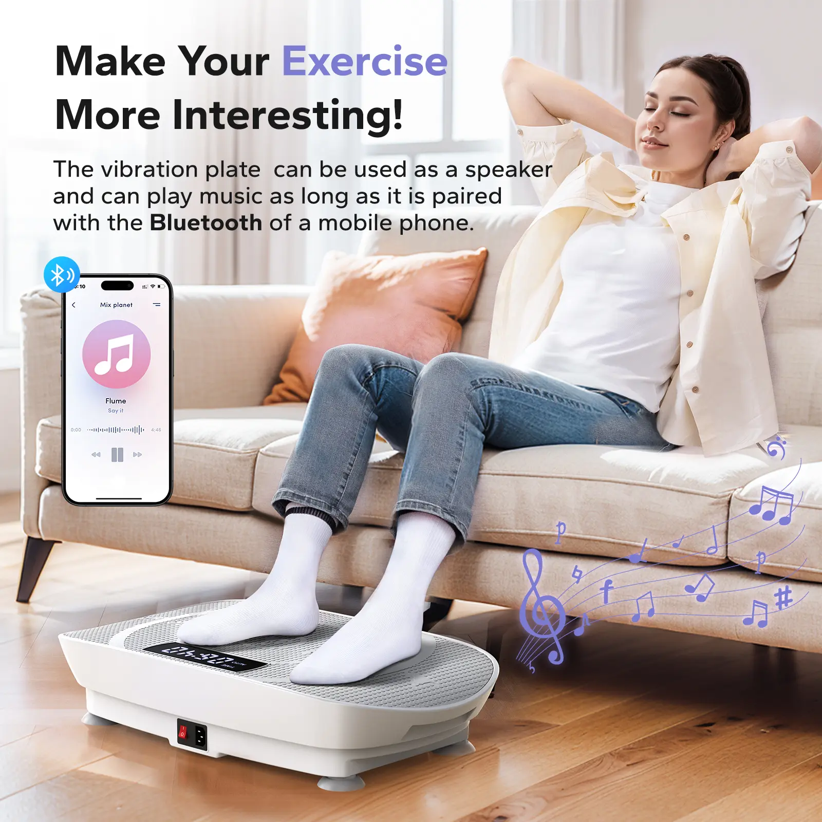·【Convenient Operation, Easy Storage】The vibration plate supports remote control operation, while the LED display screen clearly shows time and speed, allowing you to monitor exercise progress at any time. The anti-slip design and durable ABS shell ensure machine stability and longevity. Its compact size makes it easy to carry and store.