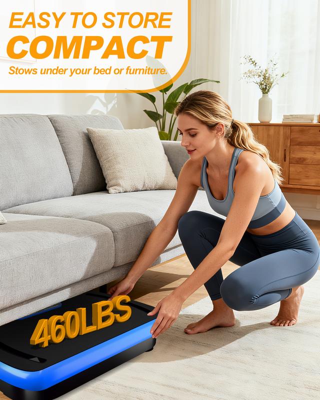 Quiet & Home-Friendly Design – Low-noise motor lets you work out anytime without disturbing your family or neighbors. Compact size makes it easy to fit under a bed, sofa, or in a small home gym.