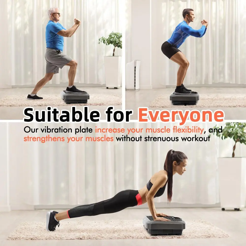 The vibrating plate exercise machine adds intensity to your exercises routine, help toning up your body. Combine it with your regular exercises for a comprehensive workout.