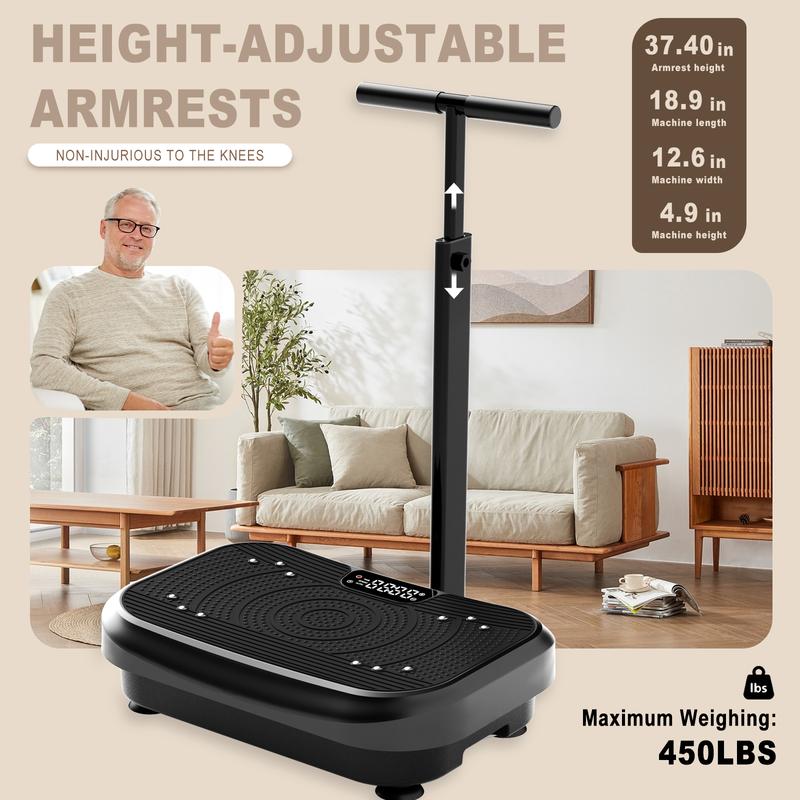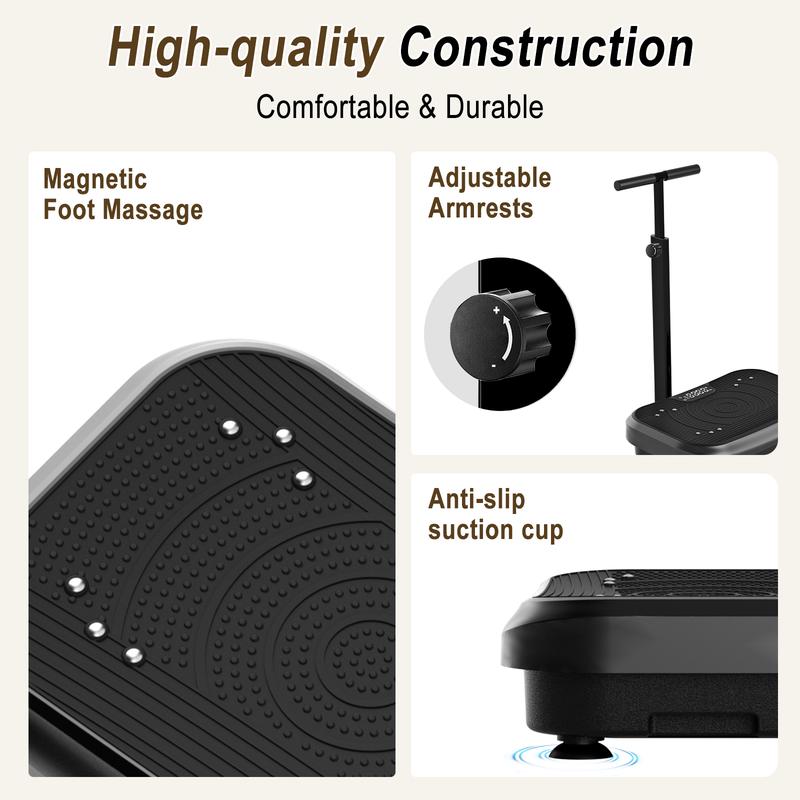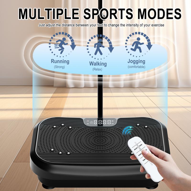 【Easy to operate and easy to store】The vibration plate supports remote control operation, while the LED display clearly displays time and speed, allowing you to monitor your exercise progress at any time. The non-slip design and durable ABS shell ensure the stability and service life of the machine.