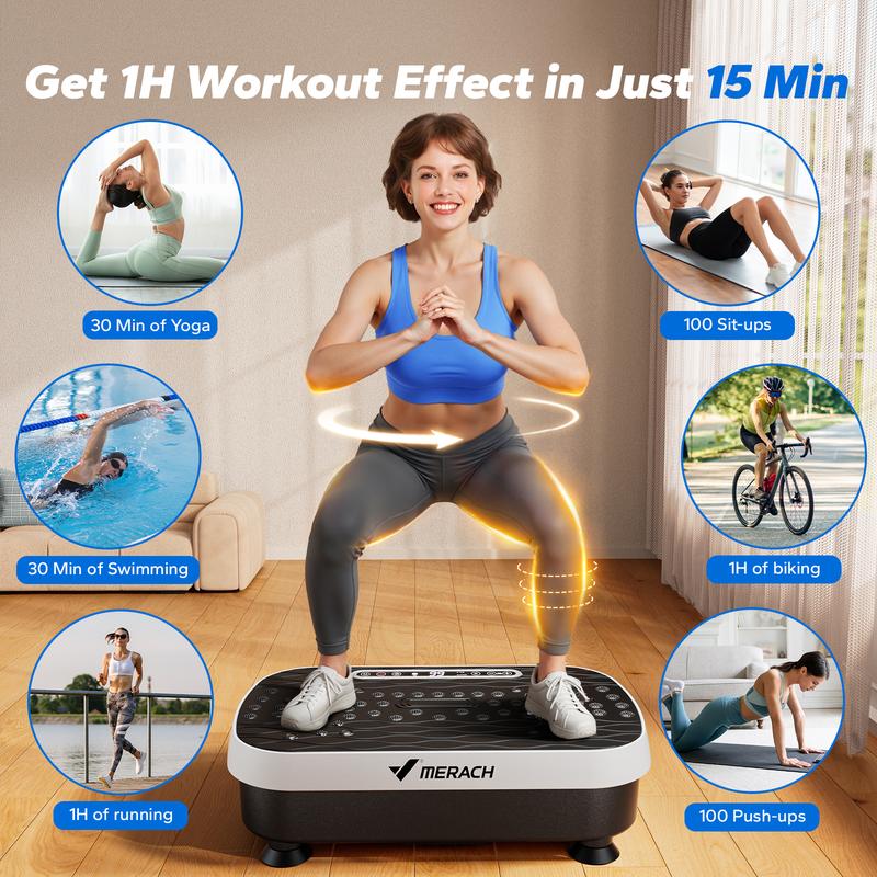 This is a really nice vibration plate, it's small and but also powerful and quiet and the package comes with push up handles, massage pedals and cord pullers, it is perfect for me!