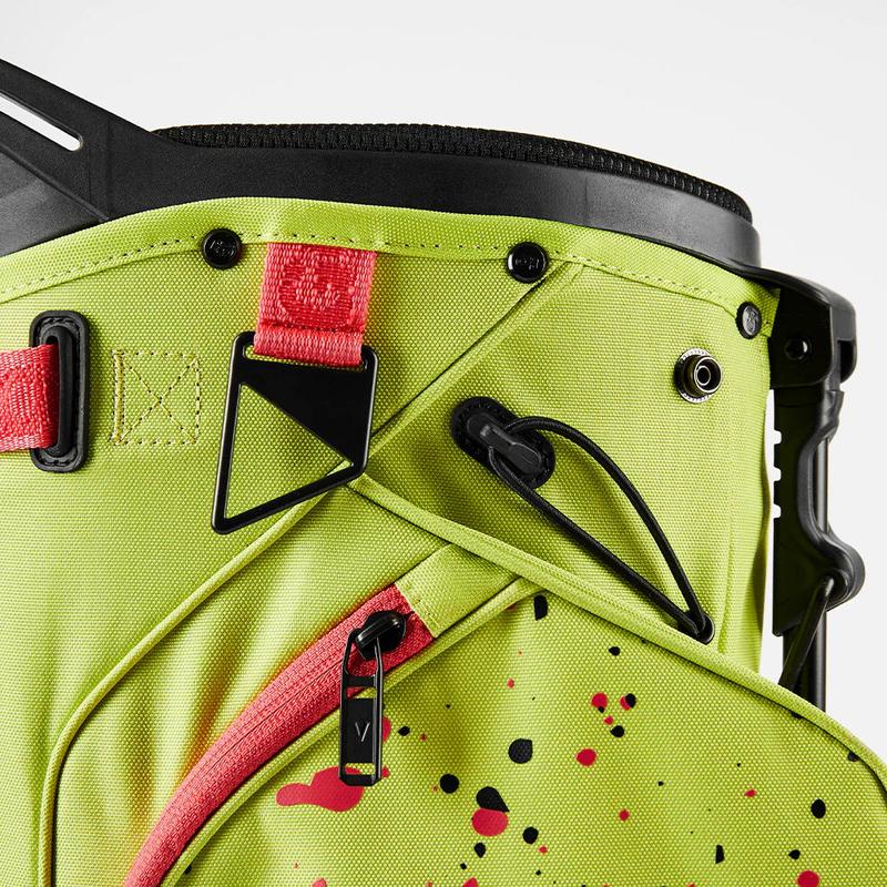 The Vice Aero Carry Bag Lime stands out with its eye-catching design. The lime color and red accents make it easily noticeable on the course. The bag's design ensures you can quickly find your clubs and accessories.