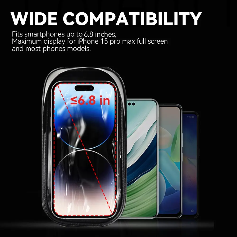 Wide Phone Compatibility – Fits devices up to 6.8" including iPhone 15 Pro Max and most Android smartphones.