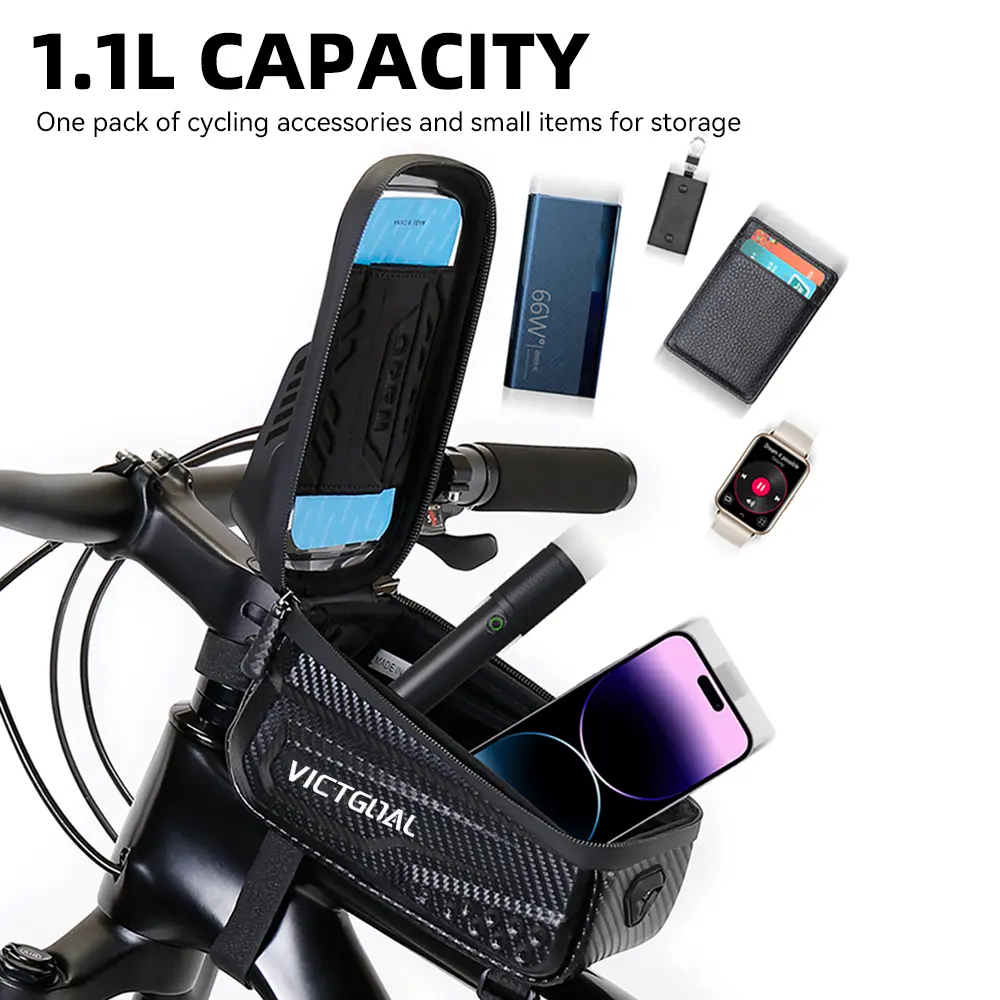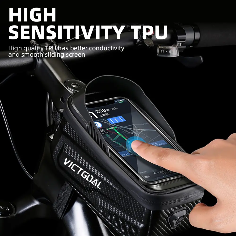 VICTGOAL Waterproof Bike Frame Bag, Top Tube Bicycle Storage with 6.8" Touchscreen Phone Holder, Large Capacity Cycling Pouch for MTB & Road Bikes