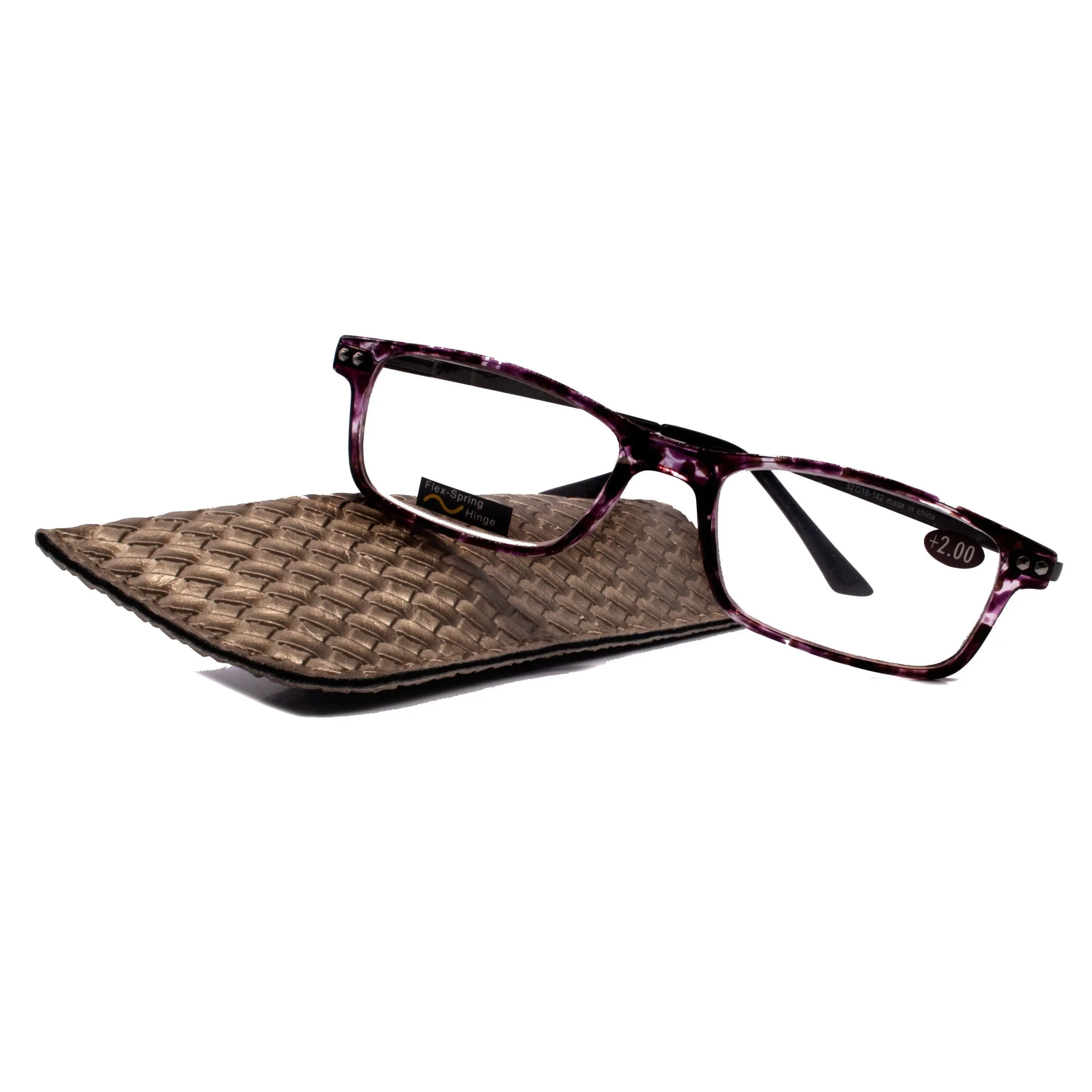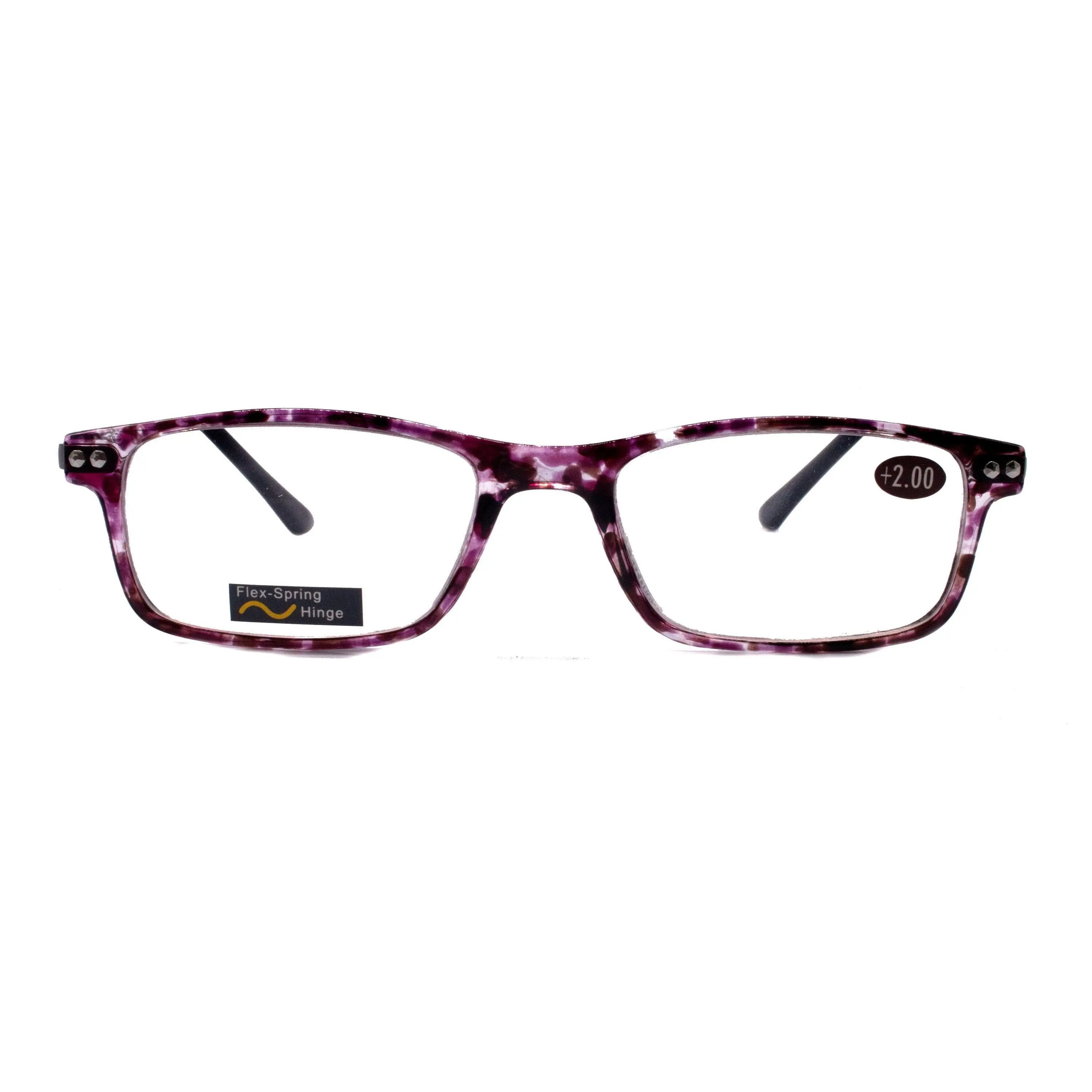Vienna, (Premium) Reading Glasses High End Readers (TortoiseShell Purple) Rectangular +1.25..+3 Magnifying Metal Thin Temple NY Fifth Avenue Crystal Clear