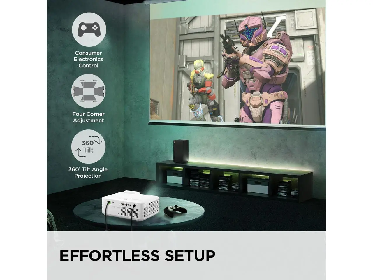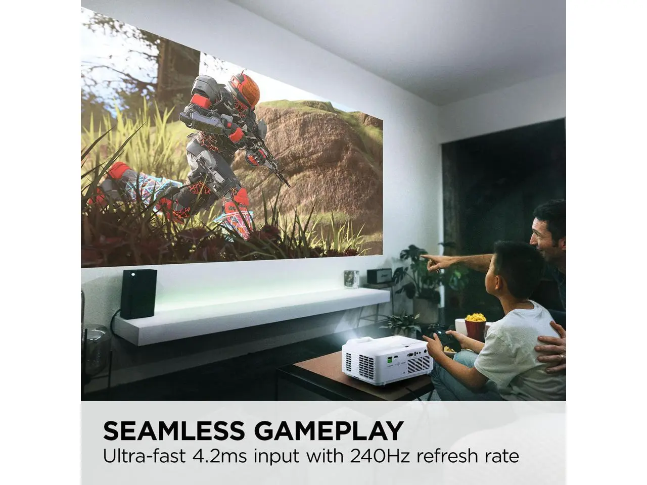 Accelerate your gameplay with 1440p resolution at a 120Hz refresh rate for the perfect balance between visual perfection and accuracy, or put the pedal to the metal by taking this projector to its maximum 240Hz refresh rate. Enjoy an enhanced, maintenance-free lifespan of up to 30, 000 hours without ever needing to replace your lamp. Plus, with other features like V lens shift, 1.36 x optical zoom, H/V keystone and four-corner adjustment, you can effortlessly build the big screen gaming and entertainment setup of your dreams.