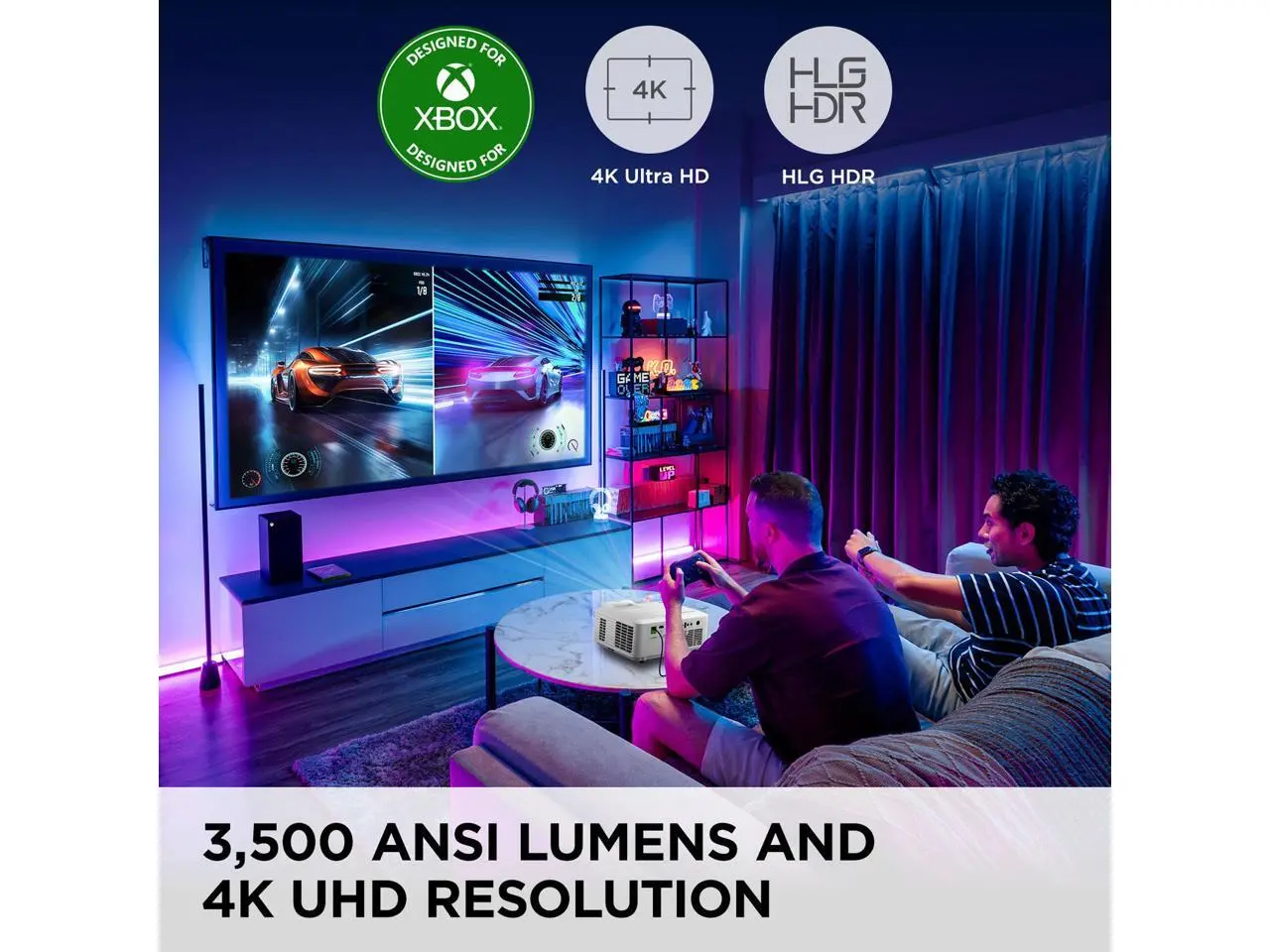 Level up your gaming setup to a bigger, brighter entertainment extravaganza with the LX700-4K gaming projector. Featuring 3, 500 ANSI lumens of stunning brightness, the ViewSonic "Designed for Xbox" 4K laser projector lets you immerse yourself in visually stunning movies and games - even in environments with high ambient lighting. Play through your favorite content on screens up to 300" or binge on a big-picture cinematic experience from the comfort of your home. Designed in partnership with Microsoft, this high-brightness projector delivers Xbox-native refresh rates and resolutions for a gaming experience that cant be beat.