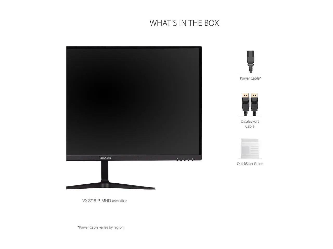 The ViewSonic VX2718-P-MHD is a 27 1080p gaming monitor built for gaming and entertainment. With a sleek frameless design, the VX2718-P-MHD provides a seamless viewing experience for multi-monitor gaming setups. Featuring a 180Hz* refresh rate, 1ms (MPRT) response time and AMD FreeSync Premium technology, this monitor virtually eliminates screen tearing and stuttering for a fluid gaming experience. The VX2718-P-MHD also comes equipped with ViewSonic exclusive ViewMode presets, which offer optimized screen performance for different home entertainment applications such as watching movies, editing files, or playing video games. Two HDMI (v 1.4 )