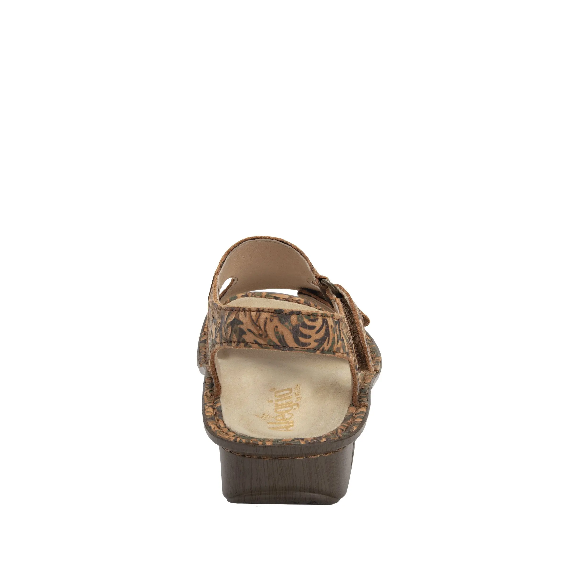 The Viki sandal is a standout style that draws peoples attention even from far away. Gorgeous laser engraved design on printed leather in Country Road pattern paired with two adjustable straps and a sling back ankle strap for steady support, this sandal is sure to garner compliments all through the warm weather season.
