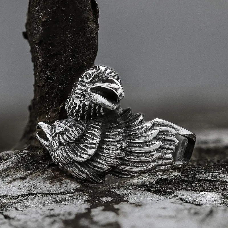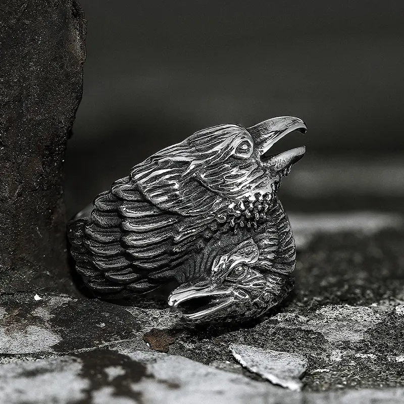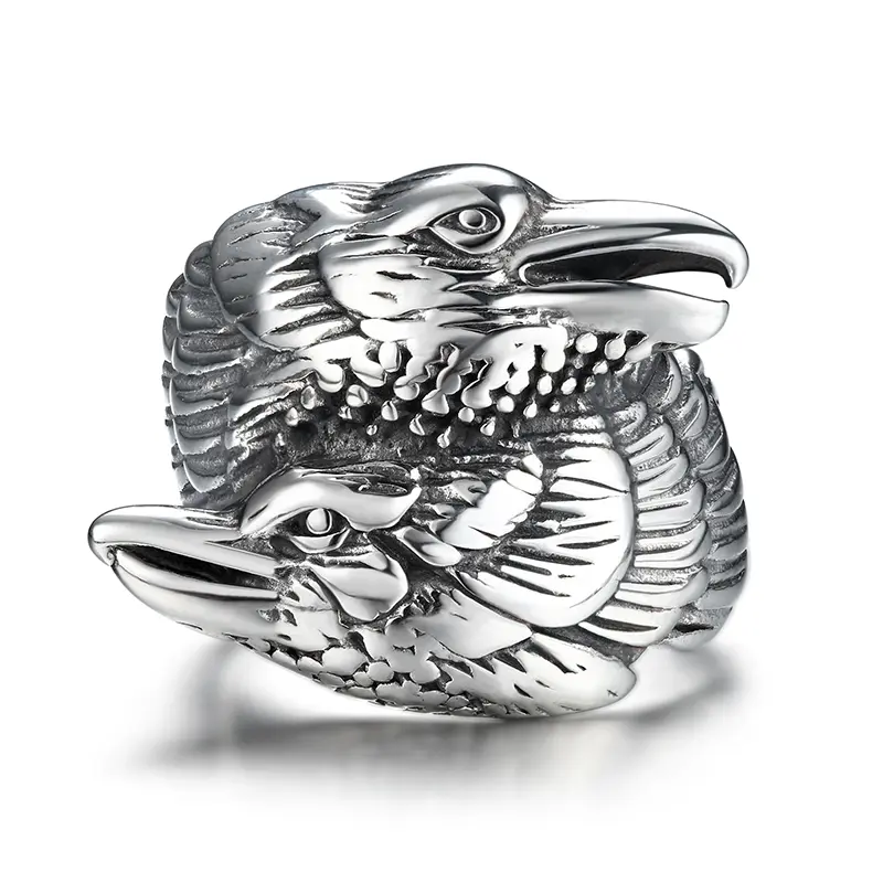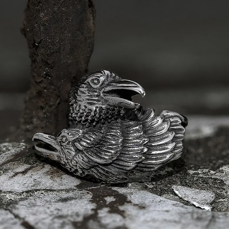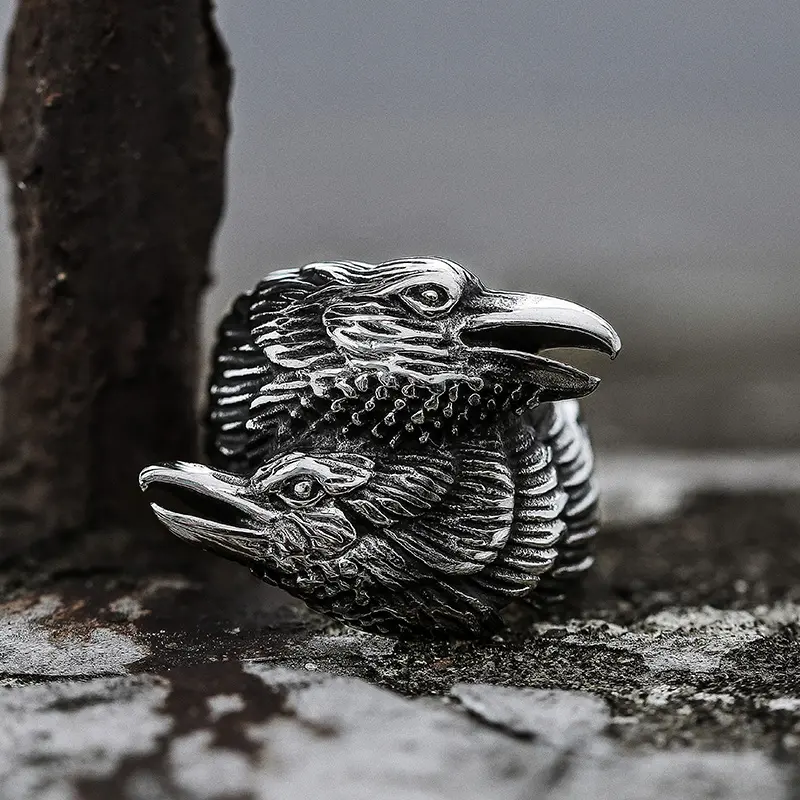 GTHIC Stainless Steel Viking Double Raven Head Ring For Men Women Retro Punk Odin's Crows Amulet Animal RingGTHIC Stainless Steel Viking Double Raven Head Ring For Men Women Retro Punk Odin's Crows Amulet Animal Ring