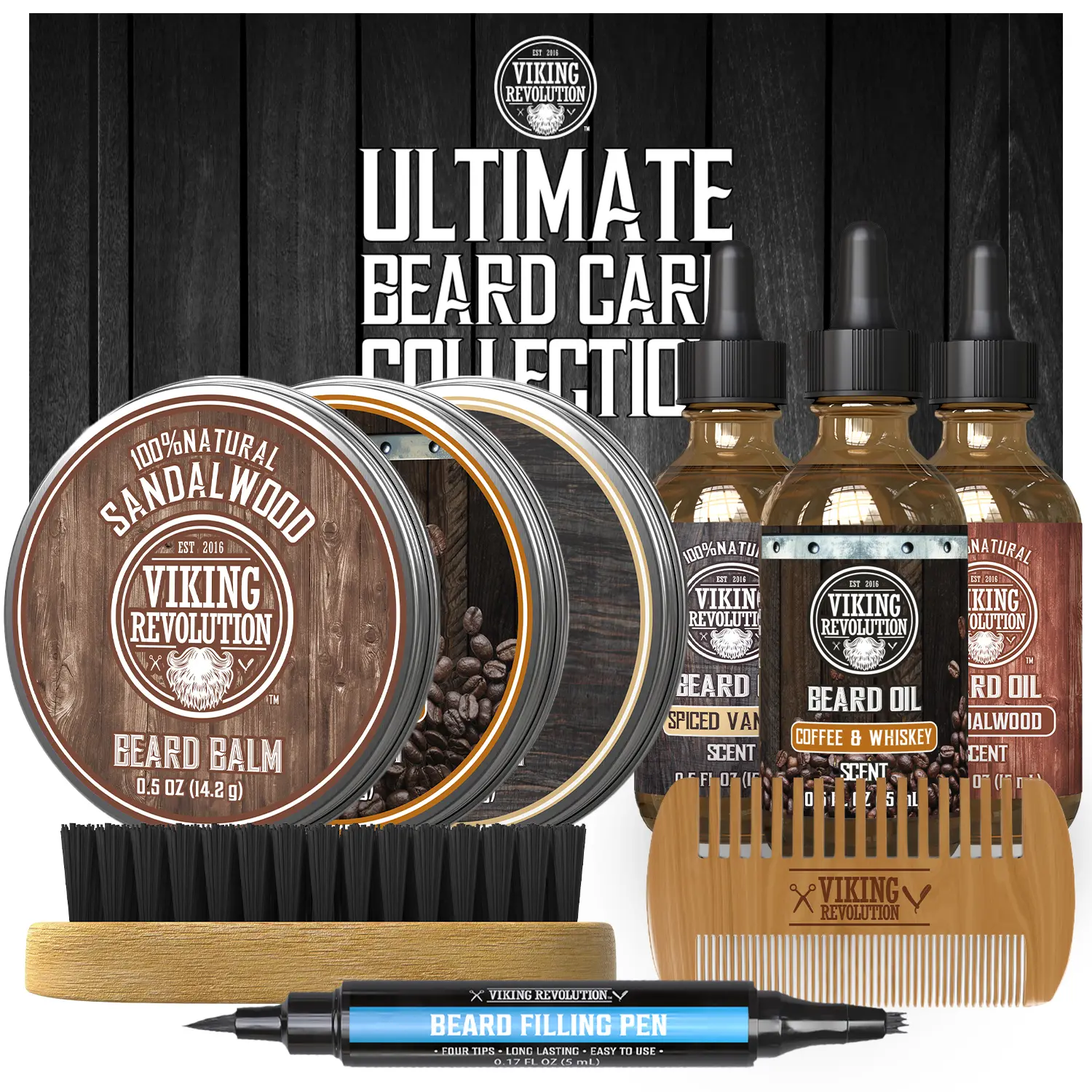 Take your beard care to the next level with the Viking Revolution Beard Care Collection. This complete set includes Beard Oil, Beard Balm, Beard Filling Pen, Beard Brush, and Beard Comb. Crafted with natural ingredients, these products condition, shape, and define your beard, keeping it soft and manageable. Perfect for short or long beards, this collection delivers the care your beard deserves.