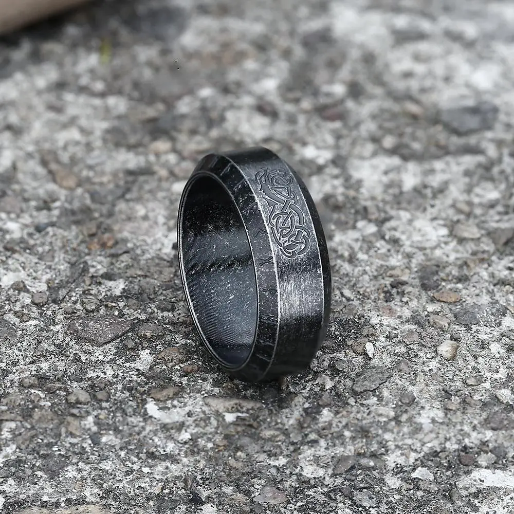 ·This ring is decorated with Viking dragon patterns and runes. The simple and stylish band ring is suitable for everyone to wear daily.