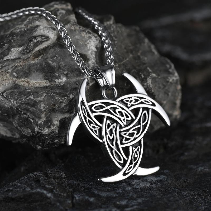 FaithHeart Viking Triple Horn of Odin Necklace Stainless Steel
