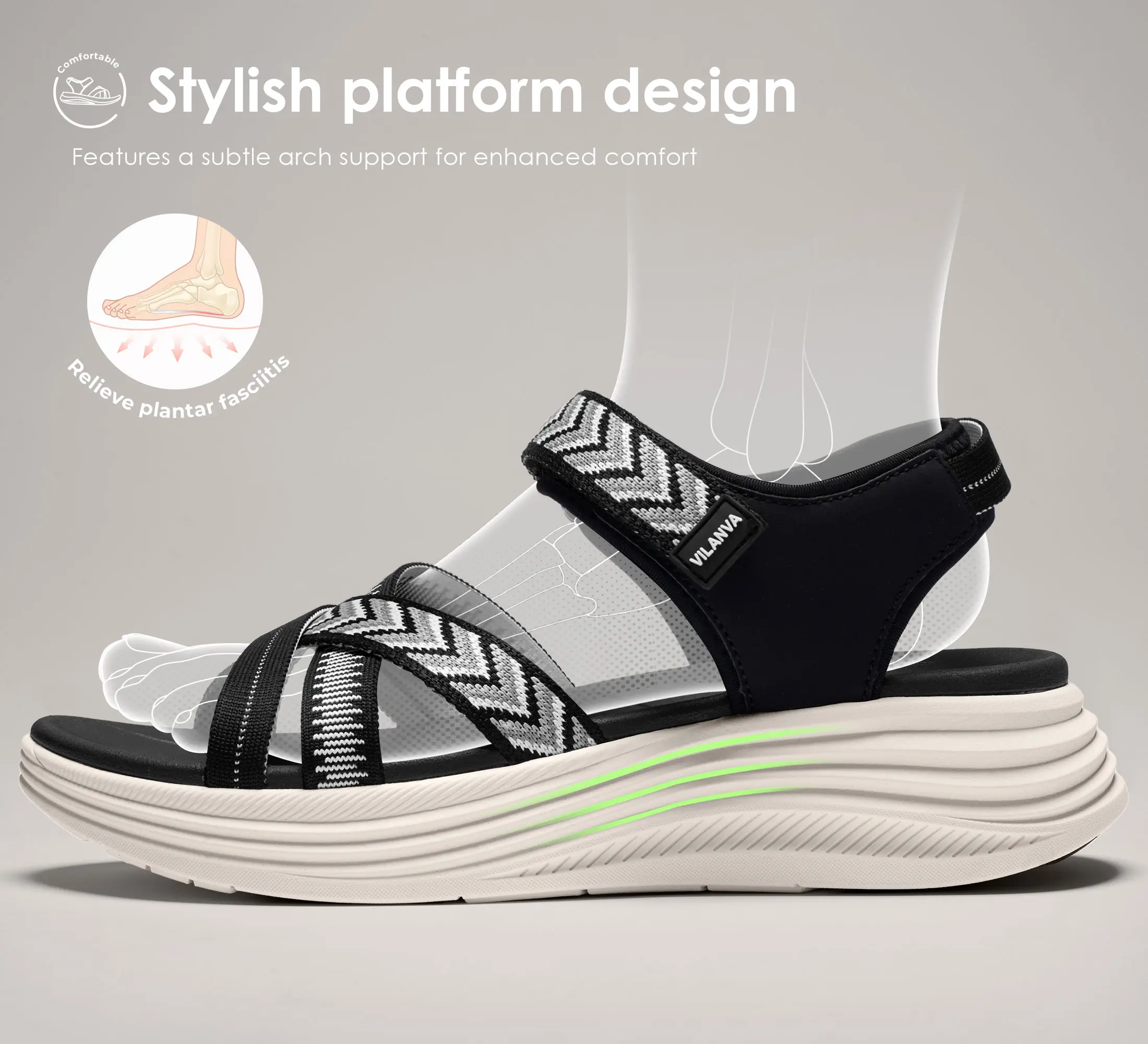 · Platform Sole with Arch Support: The elevated platform design combines modern style with functional arch support, helping reduce foot fatigue—great for anyone seeking comfort during summer activities.