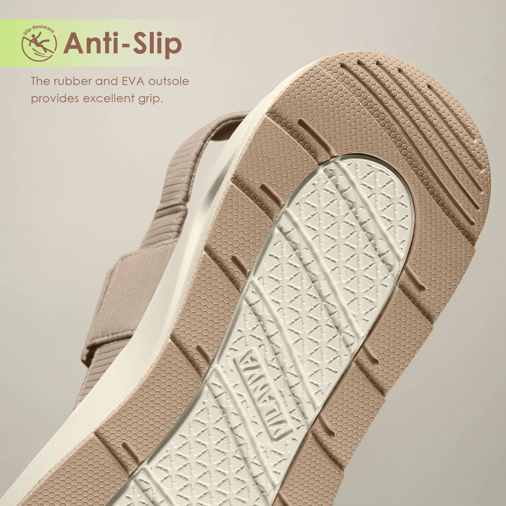 ·Safe Anti-Slip Outsole: Safety meets style with our durable rubber and EVA outsole. The textured pattern provides exceptional grip on various surfaces, preventing slips while walking on wet floors or uneven terrain. You can trust these sandals to keep you stable whether you are at the beach, by the pool, or navigating city streets.
