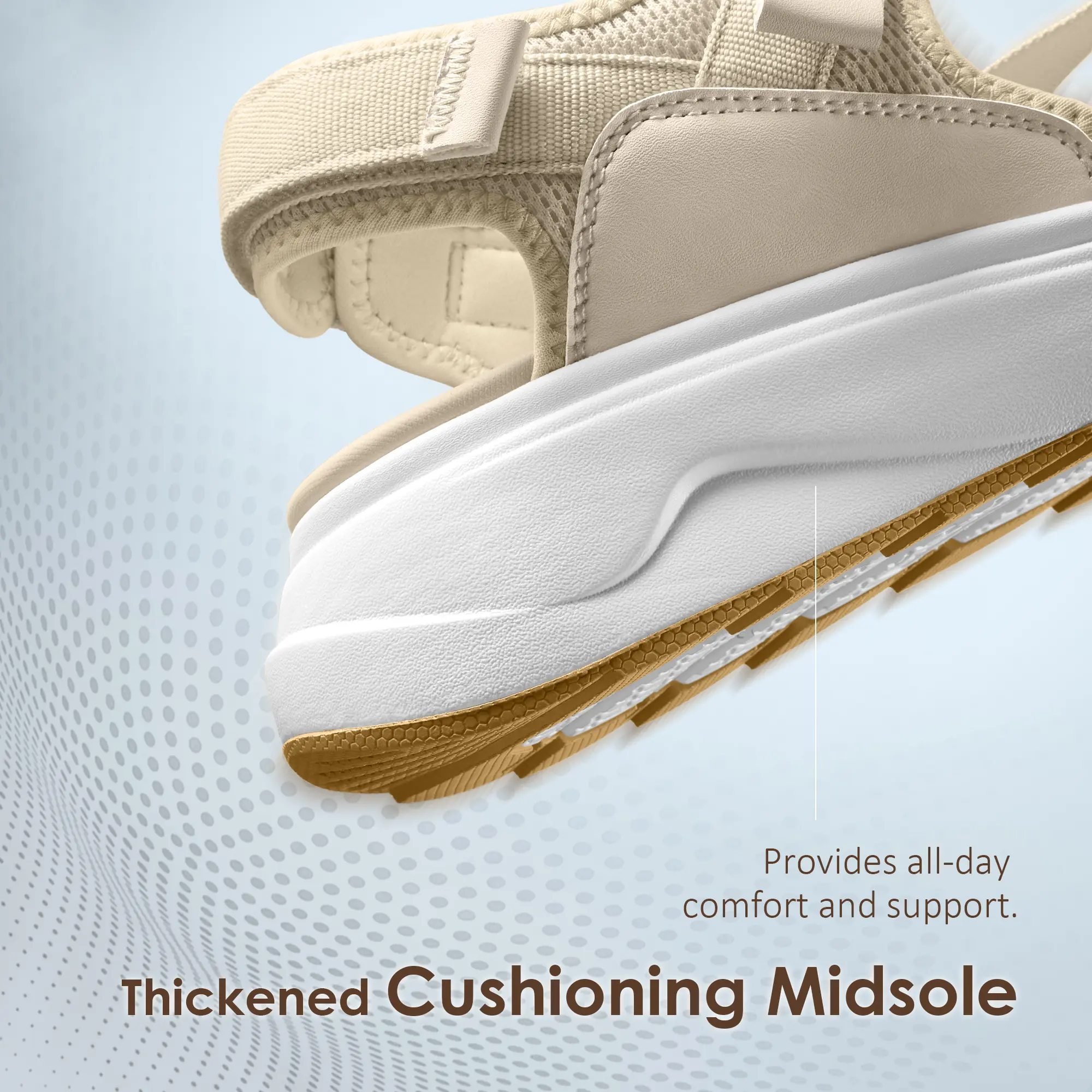 · Elevated Platform Midsole for Stability: The thickened EVA platform midsole adds gentle height while absorbing shock with every step. Provides balanced support from heel to toe, ideal for sport-inspired casual wear or active summer days on your feet.