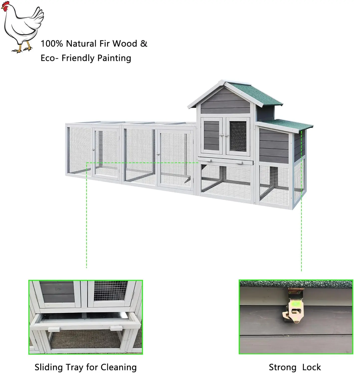 2-Tier Villa Design: The upper level is an enclosed nesting and resting area, the lower level is a semi-open activity space, paired with an extra-long run to meet poultry's full-scenario needs of resting, laying eggs, and moving.