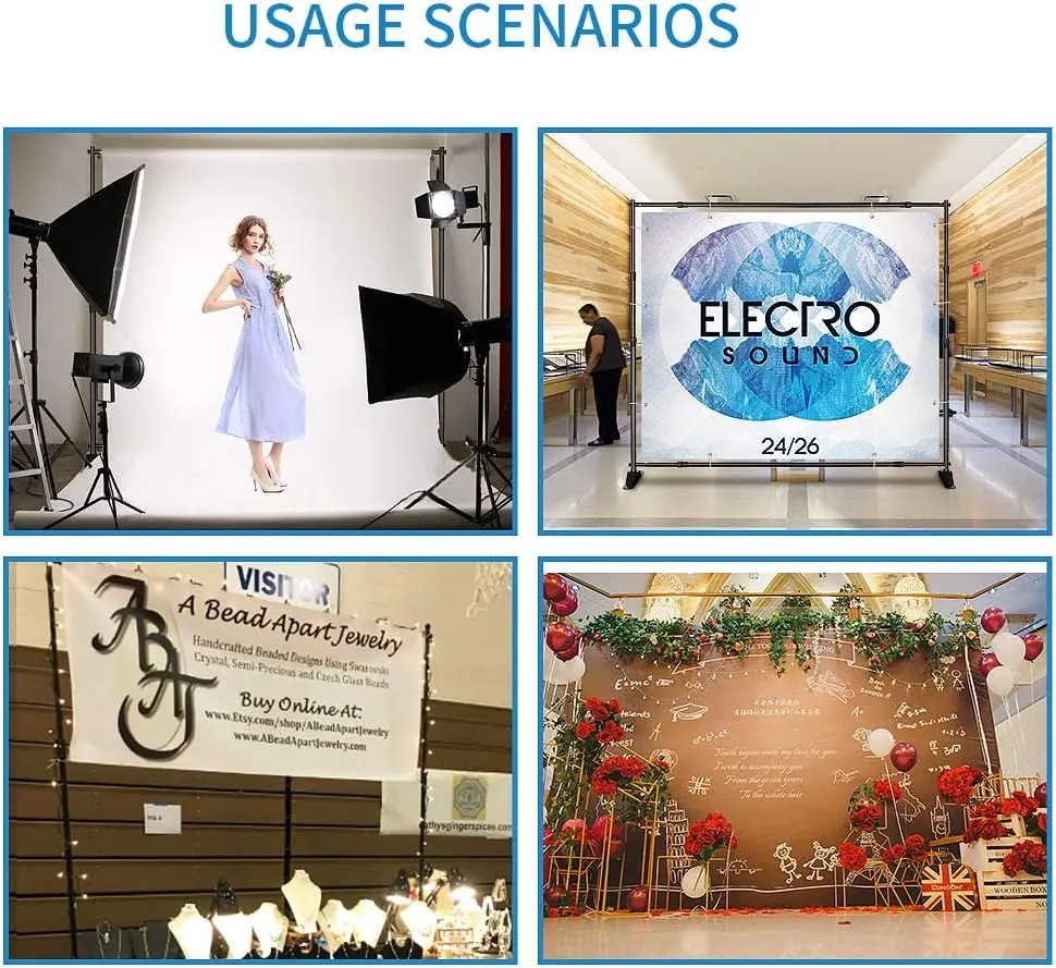 Backdrop Banner Stands provides you with better display experience. Extra Thick Pipe makes it last to use.