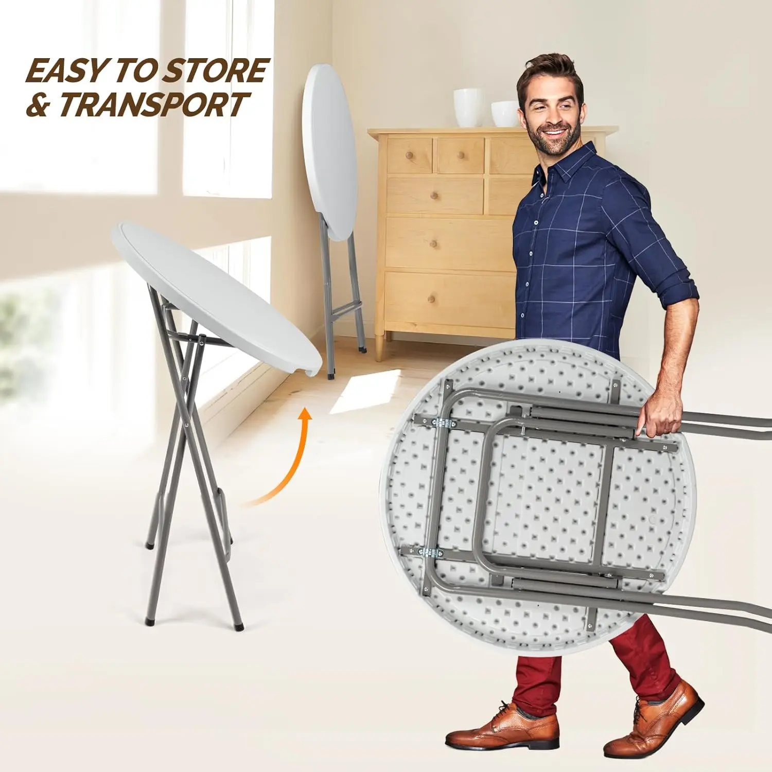 VINGLI 23.5/32" Plastic Folding Round Table Bar Height, HDPE Matrial with Gray Metal Finish, High Top Table for Outdoor Party, Cafes, Restaurants, Backyard, Dining Room, Wedding Event,1 PackVINGLI 23.5/32" Plastic Folding Round Table Bar Height, HDPE Matrial with Gray Metal Finish, High Top Table for Outdoor Party, Cafes, Restaurants, Backyard, Dining Room, Wedding Event,1 Pack