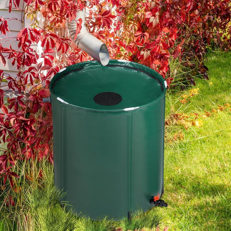 Place the barrel under your downspout for reduced water bills. This eco-friendly solution collects rainwater for garden use. Made from PVC frame and anti-corrosion PVC mesh fabric, it's durable for long-term use, even in cold winters. Unlike traditional barrels, it's crack-free and more durable.