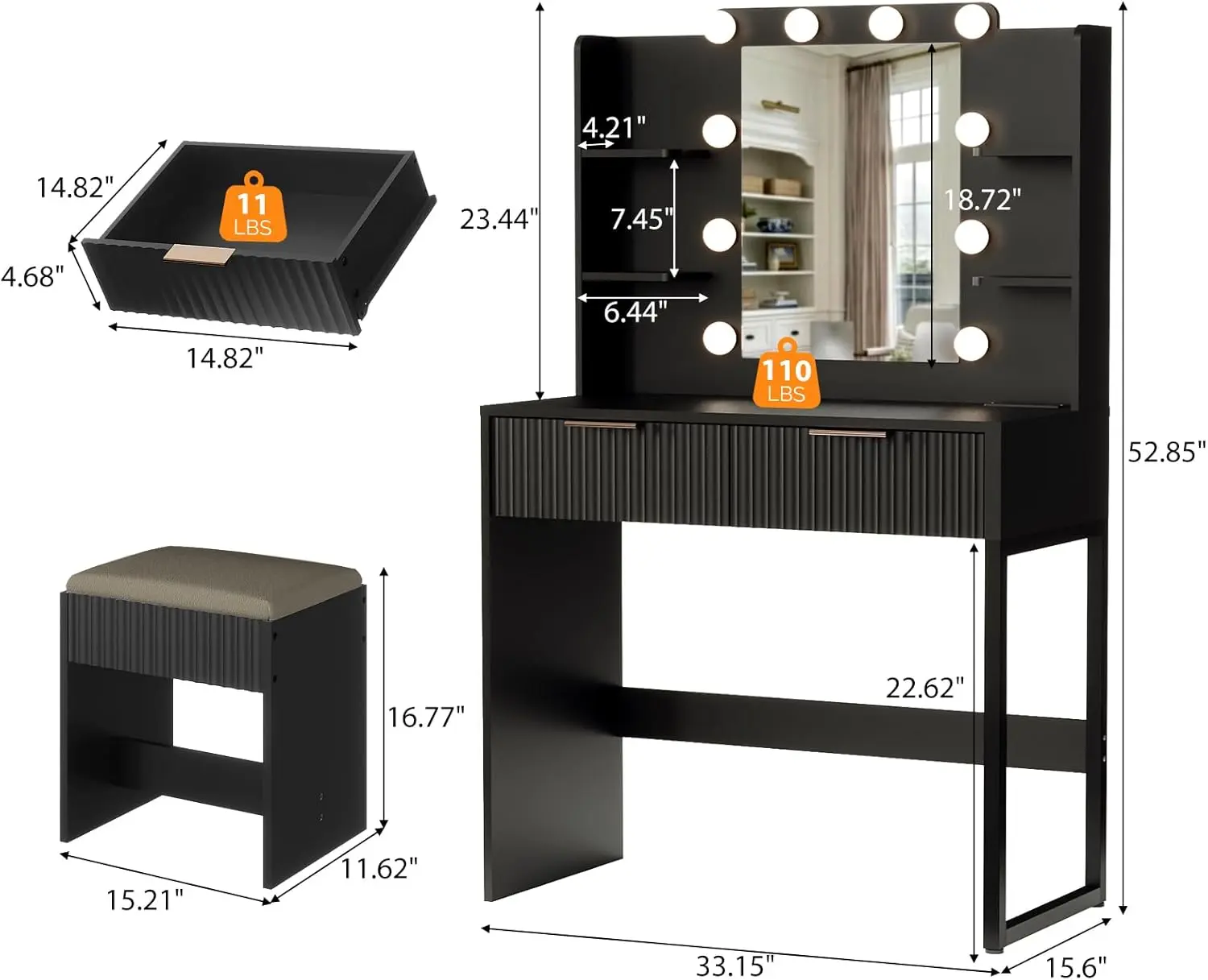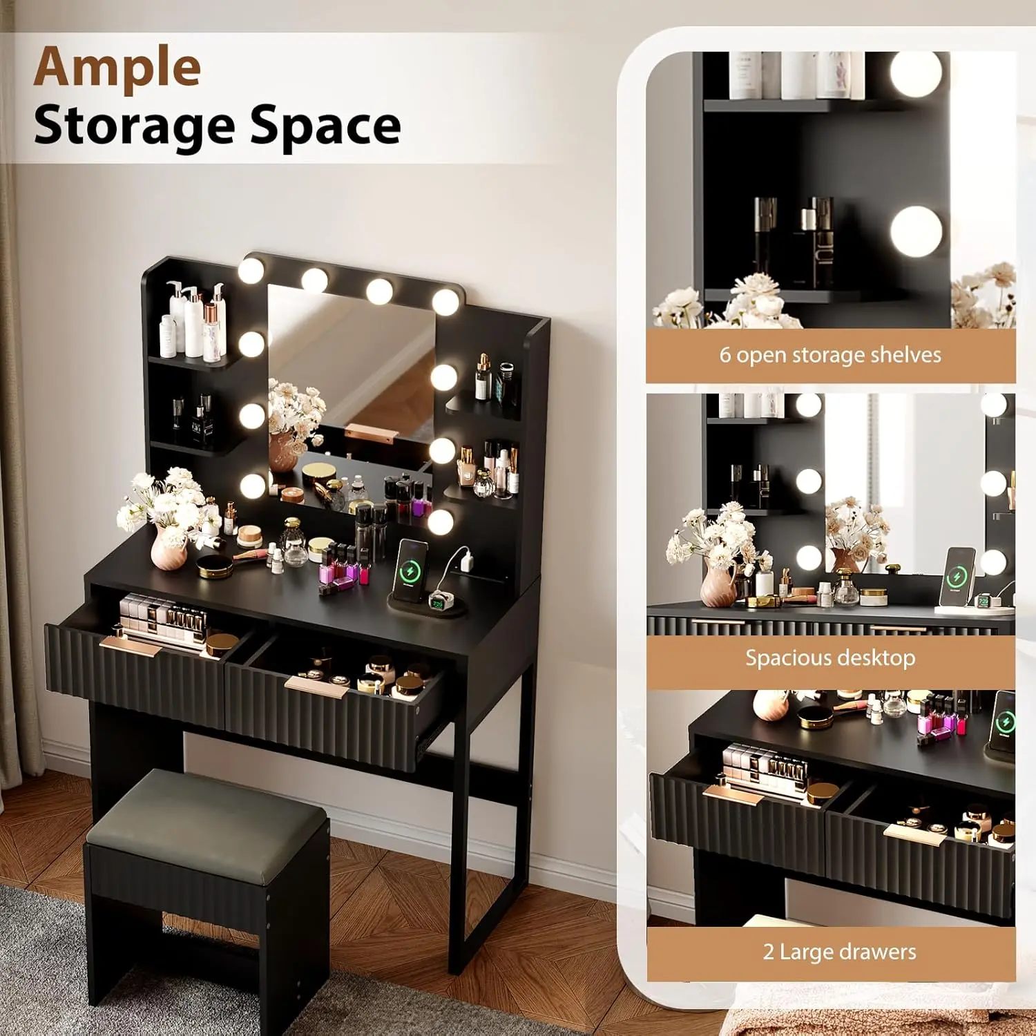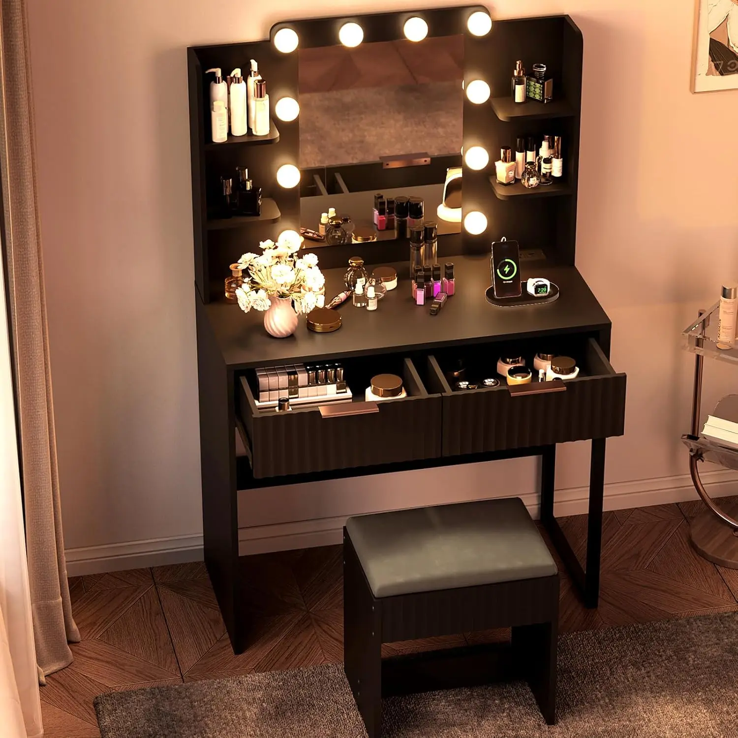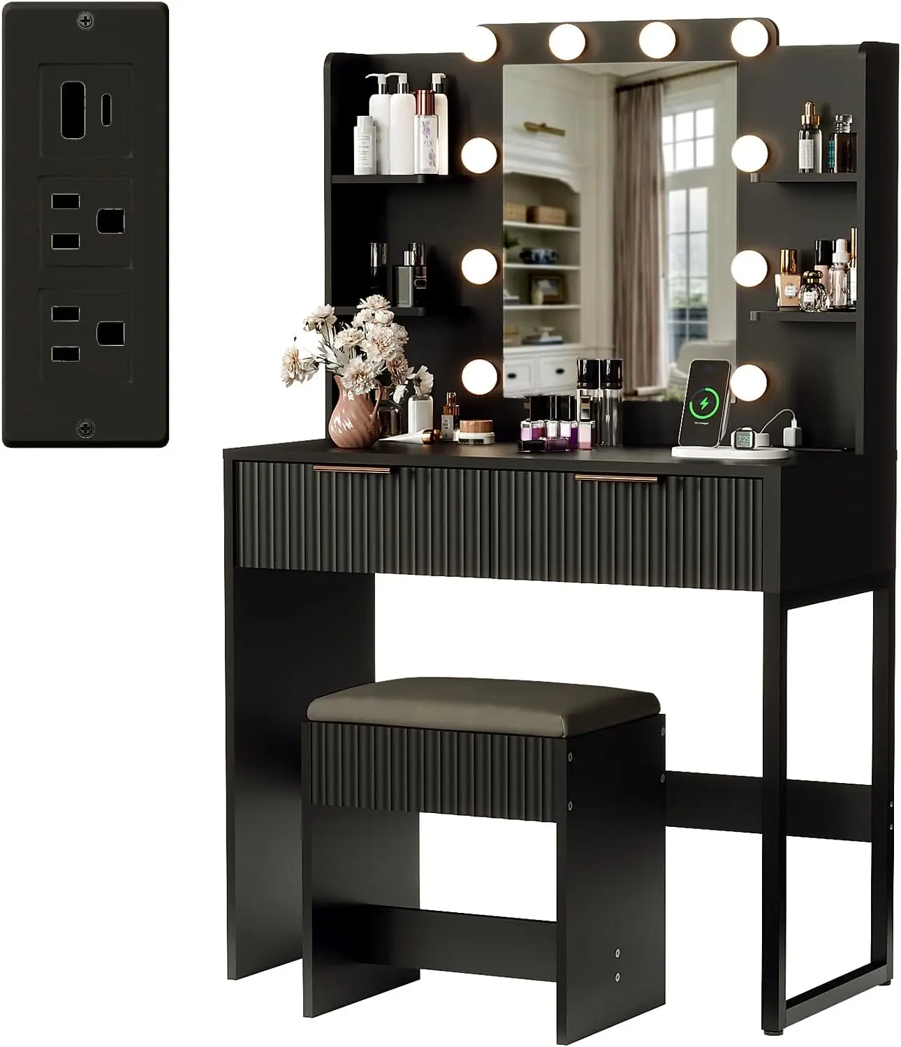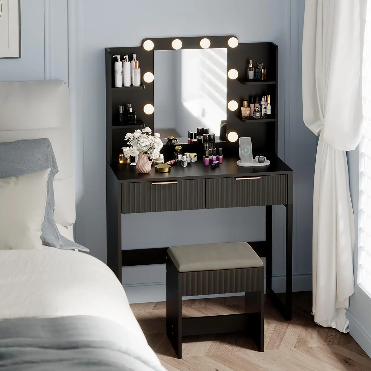 VINGLI Fluted Makeup Vanity Desk with Mirror & Lights & Power Outlet, Small Vanity Table w/ 2 Drawers & 4 Storage Shelves, Modern Dressing Table Set Charging Station for BedroomVINGLI Fluted Makeup Vanity Desk with Mirror & Lights & Power Outlet, Small Vanity Table w/ 2 Drawers & 4 Storage Shelves, Modern Dressing Table Set Charging Station for BedroomVINGLI Fluted Makeup Vanity Desk with Mirror & Lights & Power Outlet, Small Vanity Table w/ 2 Drawers & 4 Storage Shelves, Modern Dressing Table Set Charging Station for BedroomVINGLI Fluted Makeup Vanity Desk with Mirror & Lights & Power Outlet, Small Vanity Table w/ 2 Drawers & 4 Storage Shelves, Modern Dressing Table Set Charging Station for BedroomVINGLI Fluted Makeup Vanity Desk with Mirror & Lights & Power Outlet, Small Vanity Table w/ 2 Drawers & 4 Storage Shelves, Modern Dressing Table Set Charging Station for BedroomVINGLI Fluted Makeup Vanity Desk with Mirror & Lights & Power Outlet, Small Vanity Table w/ 2 Drawers & 4 Storage Shelves, Modern Dressing Table Set Charging Station for Bedroom