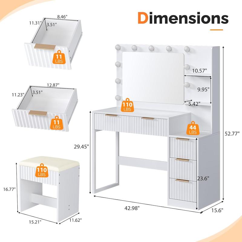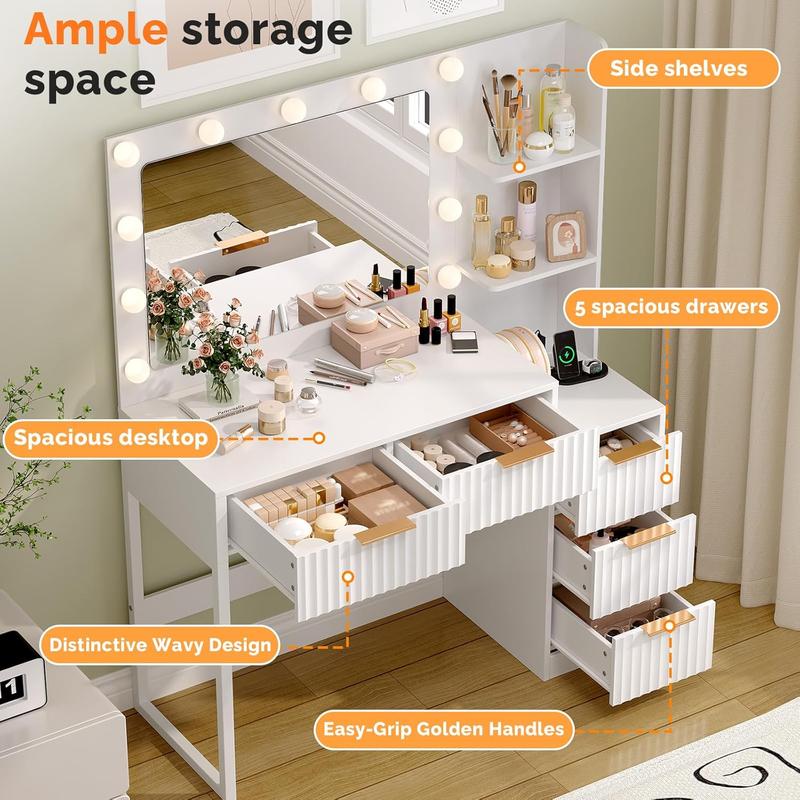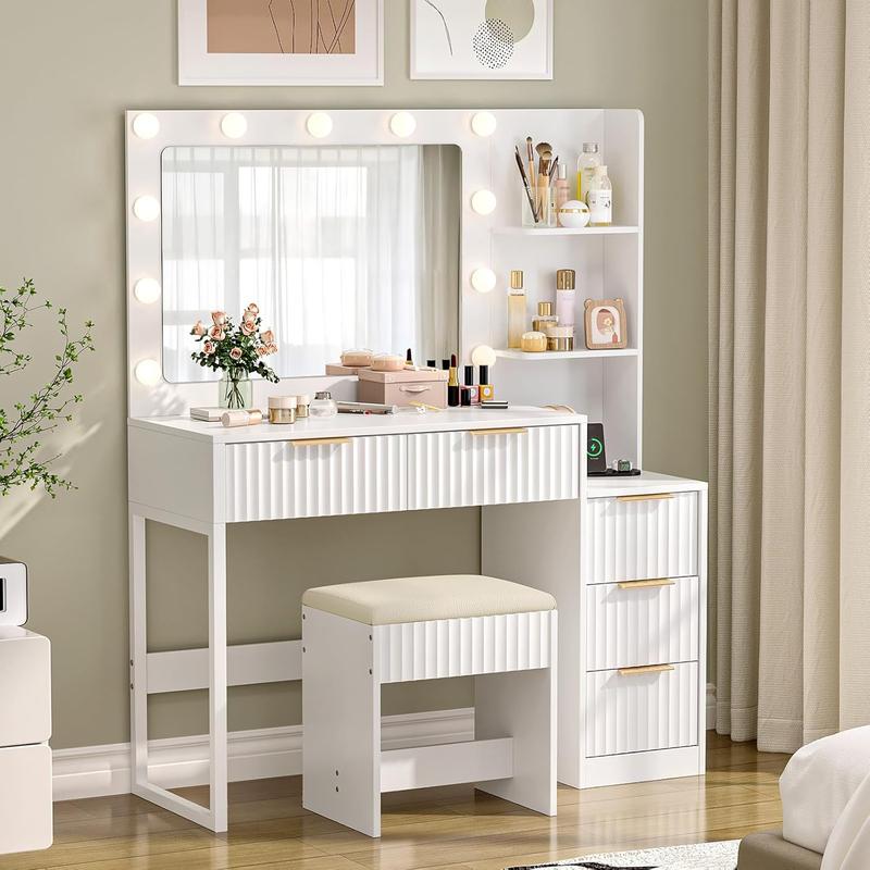 VINGLI Fluted Makeup Vanity Desk with Mirror & Lights & Power Outlet, Small Vanity Table w/ 5 Drawers & 2 Storage Shelves, Modern Dressing Table Set Charging Station for BedroomVINGLI Fluted Makeup Vanity Desk with Mirror & Lights & Power Outlet, Small Vanity Table w/ 5 Drawers & 2 Storage Shelves, Modern Dressing Table Set Charging Station for BedroomVINGLI Fluted Makeup Vanity Desk with Mirror & Lights & Power Outlet, Small Vanity Table w/ 5 Drawers & 2 Storage Shelves, Modern Dressing Table Set Charging Station for BedroomVINGLI Fluted Makeup Vanity Desk with Mirror & Lights & Power Outlet, Small Vanity Table w/ 5 Drawers & 2 Storage Shelves, Modern Dressing Table Set Charging Station for BedroomVINGLI Fluted Makeup Vanity Desk with Mirror & Lights & Power Outlet, Small Vanity Table w/ 5 Drawers & 2 Storage Shelves, Modern Dressing Table Set Charging Station for BedroomVINGLI Fluted Makeup Vanity Desk with Mirror & Lights & Power Outlet, Small Vanity Table w/ 5 Drawers & 2 Storage Shelves, Modern Dressing Table Set Charging Station for Bedroom