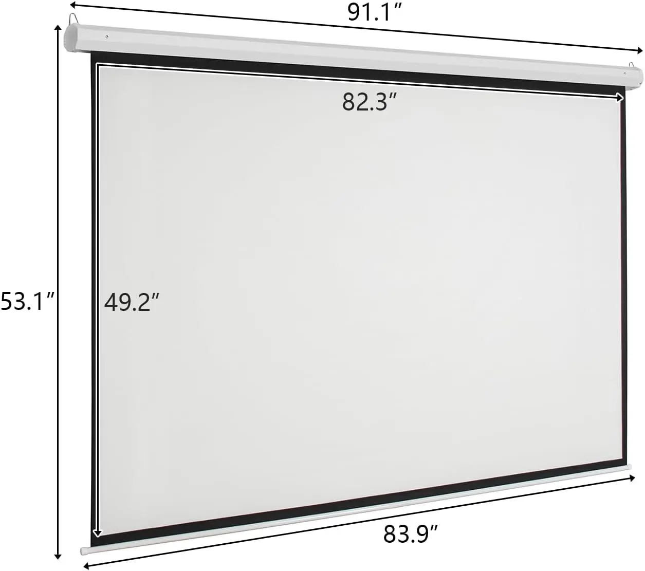 Kshioe 92" 16:9 80" x 45"Viewing Area Motorized Projector Screen with Remote Control, can offer you aperfect visual enjoyment with optimal image and color reproduction. It is idealfor home theater movies, classroom training, conference room presentations,public display, etc. High quality matte white surface provides 80" x45" of viewing area with 16:9 aspect ratio. It features high quality mattewhite viewing surface, which diffuses projected light evenly. Take this oneback for enjoying your leisure time!