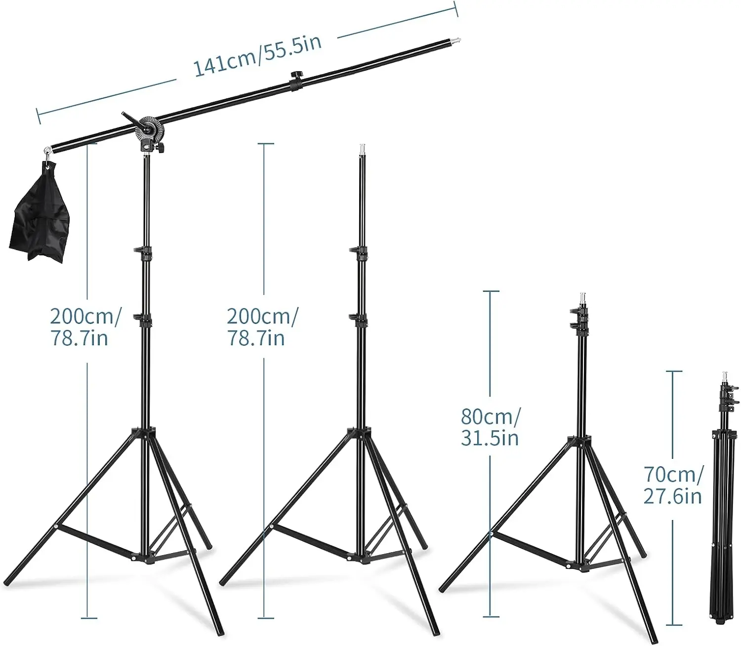 3 x 78in /200 cm light stands