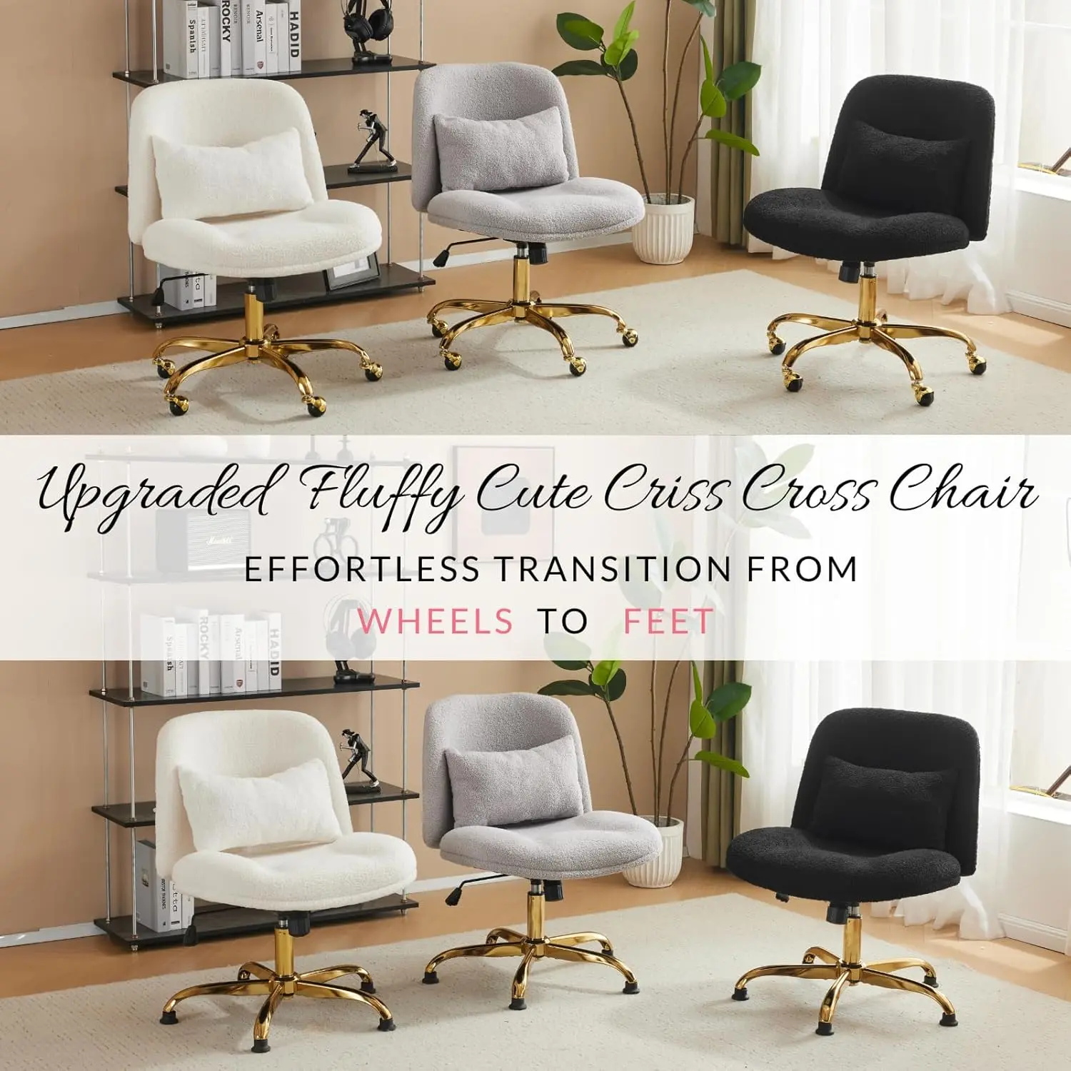 ·4. STYLISH GOLDEN LOOK: Elegant gold legs add a sense of luxury, stand out in a criss cross chair market that 99% black nylon legs. Available in classic black, white, gray, blends well with any space.The armless design saves space and maintains a minimalist aesthetic. This high-quality rolling chair combines luxury and comfort and is ideal for home office, bedroom, makeup, dorm room and more. If you're looking for a high-quality chair that combines luxury and comfort, Come and experience it~
