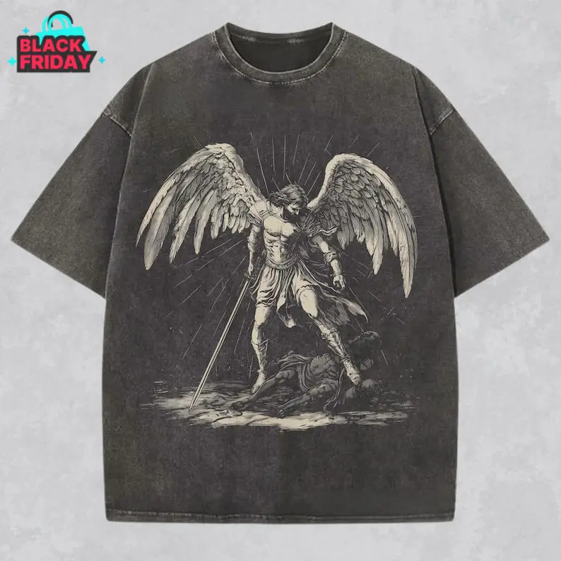 🌟 Vintage Archangel Michael Christian Streetwear Graphic Tee 🌟