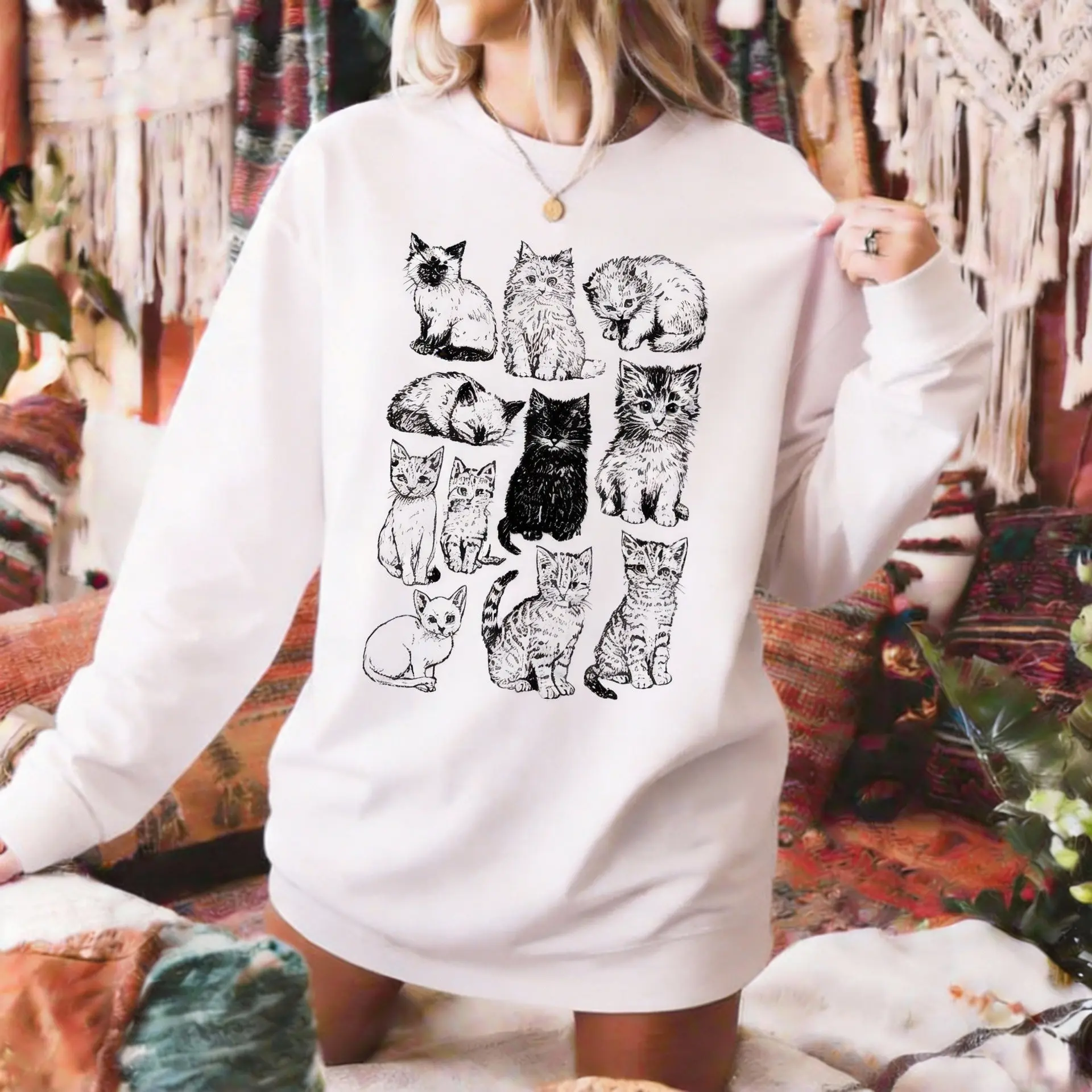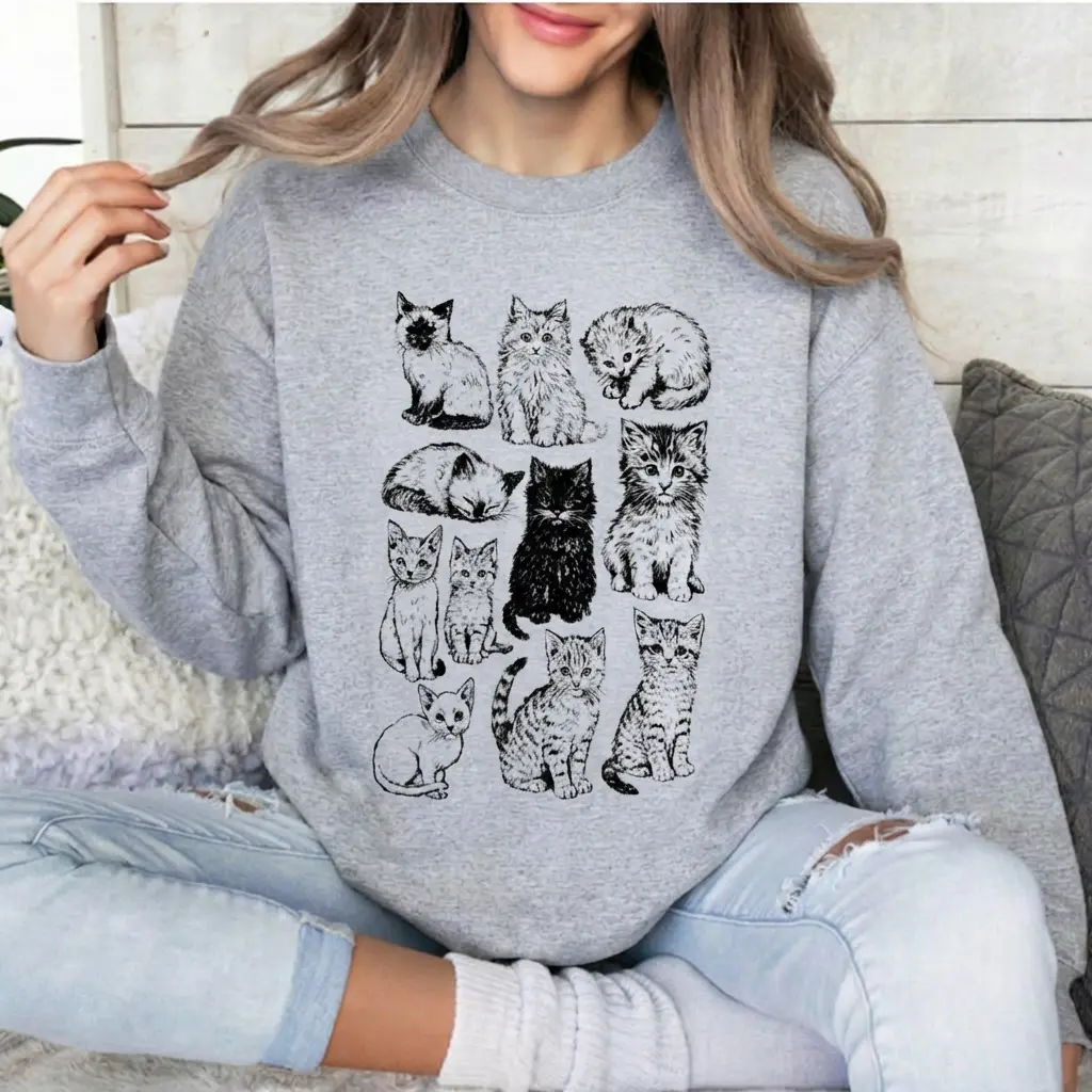 5. The Vintage Cat Sweatshirt, Retro Kitten Graphic Pullover, Cozy Cat Lover Gift, 90s Style Shirt, Cute Cat Mom Sweater, Boho Unisex Crewneck Sweatshirt