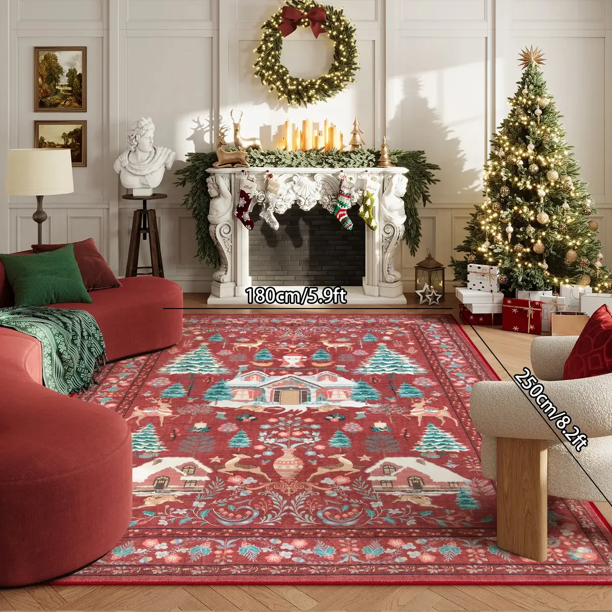 Vintage Christmas Living Room Carpet, Non-Slip Soft Rug, Home Decorative Rug, Festive Home Decor Gift, Ideal for Dining Room Office Bedroom