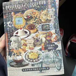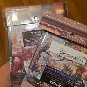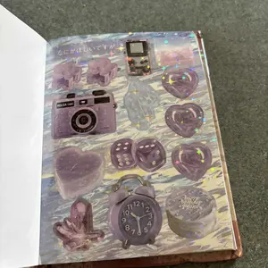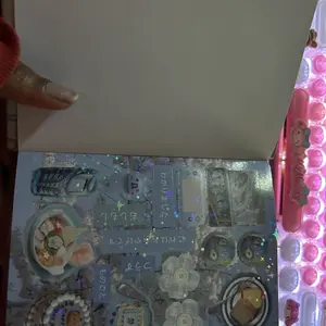 super cute! bigger than i was expecting but thatās okay, some pages are iridescent (like in my pics) some are glossy, and some are matte. comes in a hard cover which is nice! did take a bit to ship but thatās expected. super cute! :3