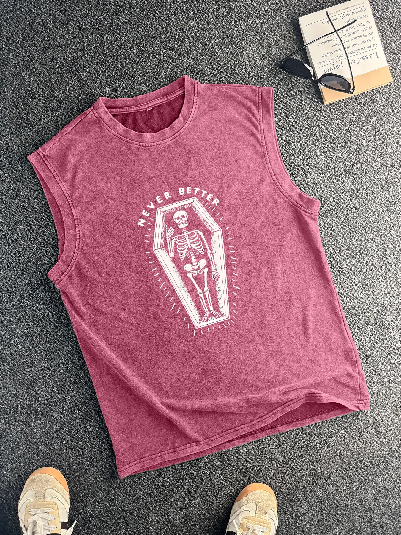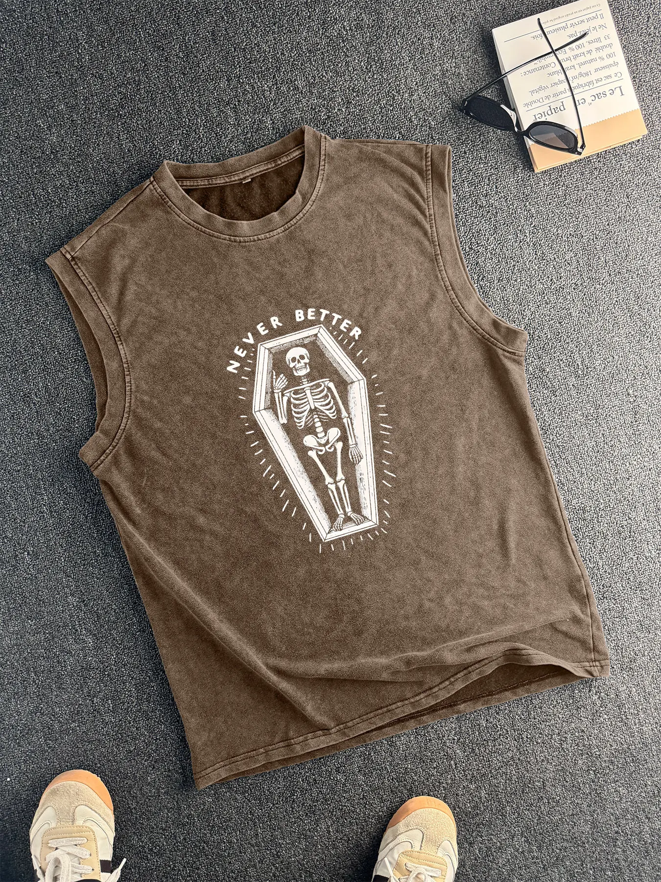 Cotton Vintage Distressed Men's Vest Round Neck Trendy Sleeveless Shirt, Summer Fashion for Men, Casual Knitwear, Age 35-44, Moderate Thickness