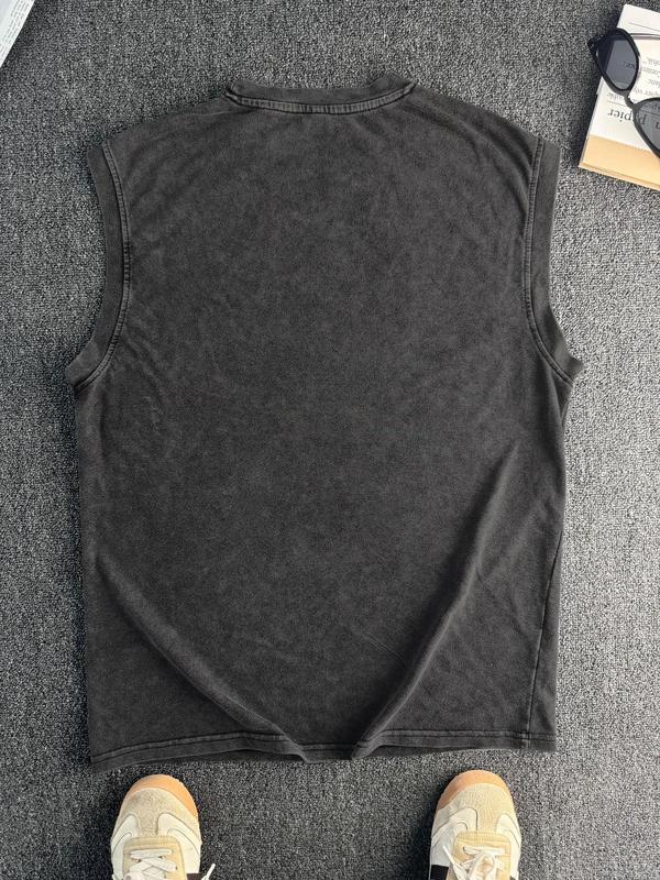 5. Cotton Vintage Distressed Men's Vest Round Neck Trendy Sleeveless Shirt, Summer Fashion for Men, Casual Knitwear, Age 35-44, Moderate Thickness