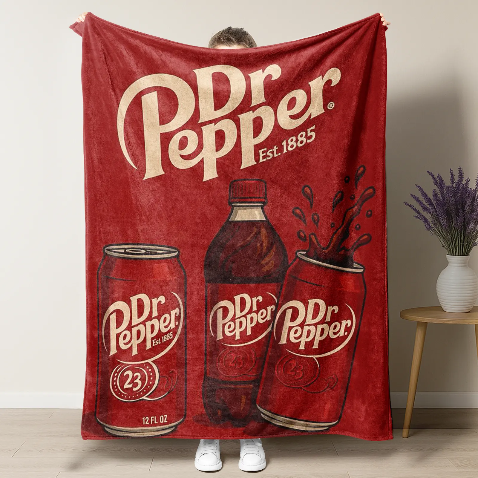 Love this! Super soft and the right size to curl up on the couch with. My SIL is a Dr. Pepper nut so this is perfect for him.