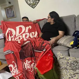 My daughter loves Dr Pepper and loves this blanket
