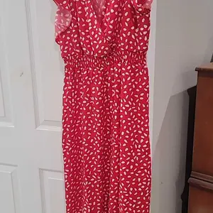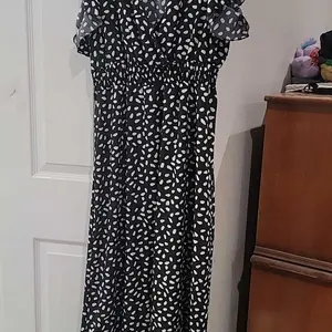 Beautiful flowly dress. I just love the way it makes me feel. My only wish would be for pockets. There is no stretch but I did size down.